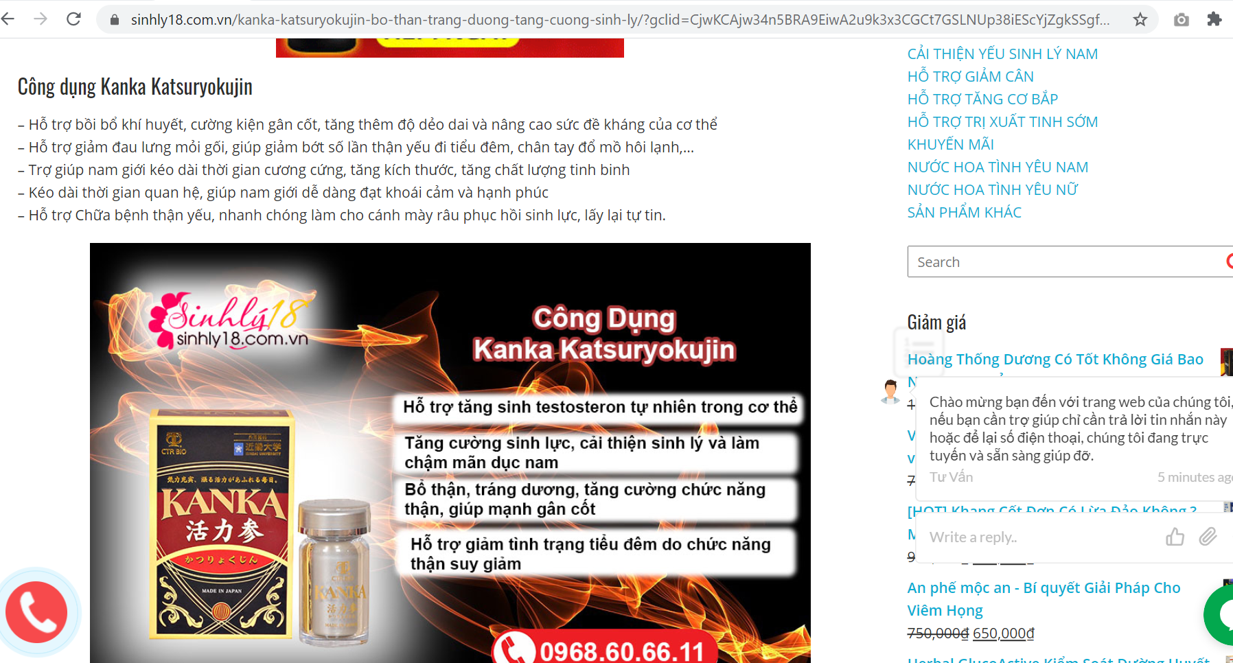 Quảng cáo Kanka Katsuryokujin trên website shop69.com.vn vi phạm quy định