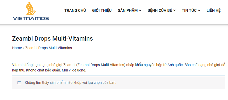 Ngoài ra, thông tin liên quan đến sản phẩm ZEAMBI Drops Multi – Vitamins cũng đã được gỡ bỏ, không thể tìm kiếm thông tin.