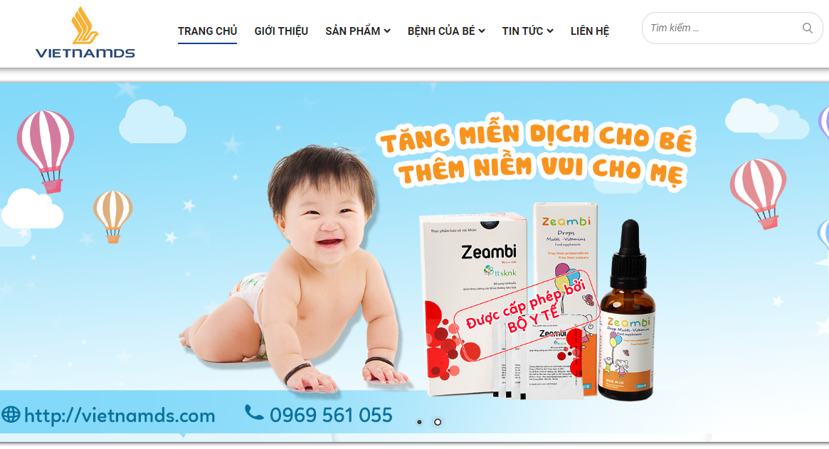 Tại ưebsite https://vietnamds.com/ chỉ đang quảng cáo 02 sản phẩm: Men vi sinh Zeambi; Vitamin Zeambi. Cùng với đó là Giấy Xác nhận công bố phù hợp quy định ATTP của sản phẩm Men vi sinh Zeambi.