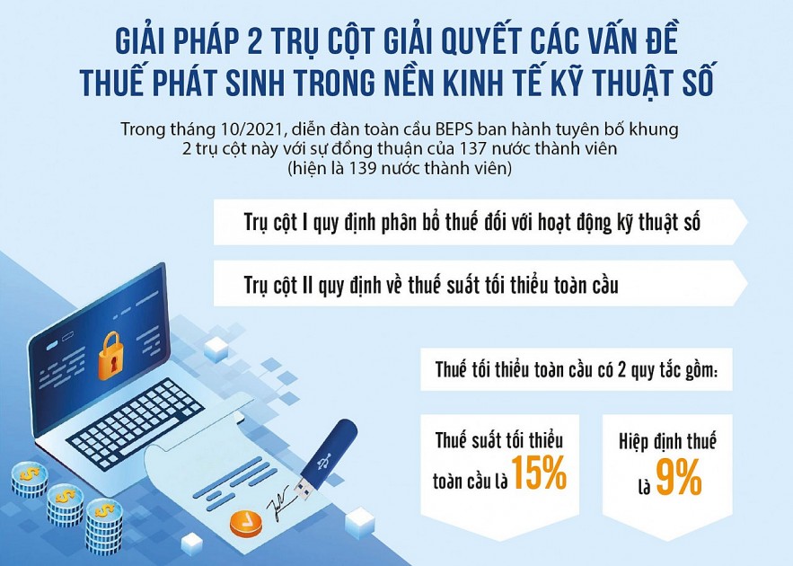Thuế tối thiểu toàn cầu nằm trong Chương trình hành động chống xói mòn thu ngân sách, trốn tránh thuế toàn cầu (BEPS) có sự tham gia của 141 quốc gia thành viên, trong đó có Việt Nam. Theo đó, các công ty lớn có doanh thu hợp nhất toàn cầu hàng năm từ 750 triệu EUR (19.500 tỷ đồng) trong ít nhất hai năm của giai đoạn 4 năm liền kề trước năm soát xét sẽ bị áp dụng mức thuế suất tối thiểu 15%. Nếu đang chịu mức thuế thấp hơn 15% ở quốc gia mà họ đầu tư, các doanh nghiệp này sẽ phải nộp phần ‘thiếu hụt’ còn lại so với mức thuế 15% cho quốc gia nơi họ có trụ sở chính.