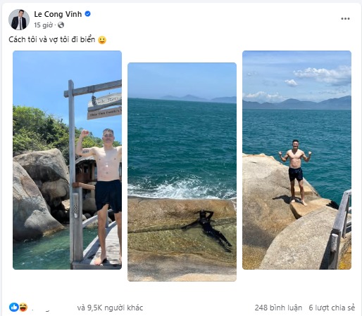 Trước đó, Thủy Tiên bị ông xã Công Vinh công khai "dìm hàng" trên MXH. Cựu tiền đạo đội tuyển Việt Nam thoải mái cởi trần, khoe thân hình săn chắc cùng cơ bụng 6 múi rõ nét.