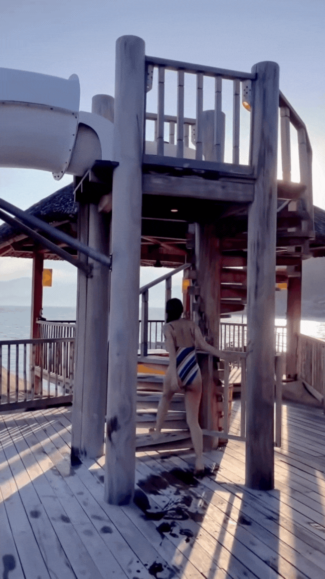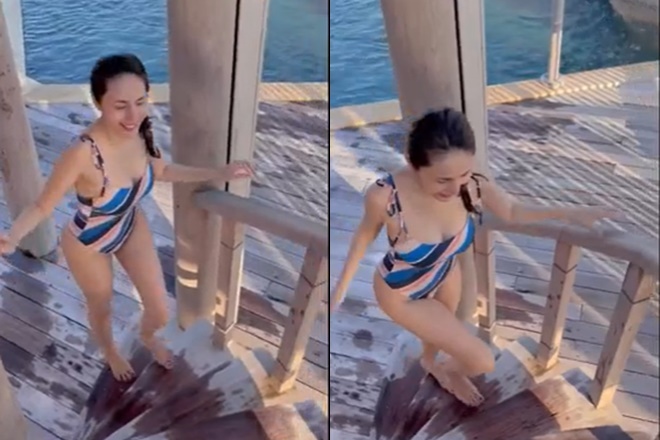 Bộ swimsuit khoét cao giúp Thủy Tiên khoe trọn vòng 3 hấp dẫn.