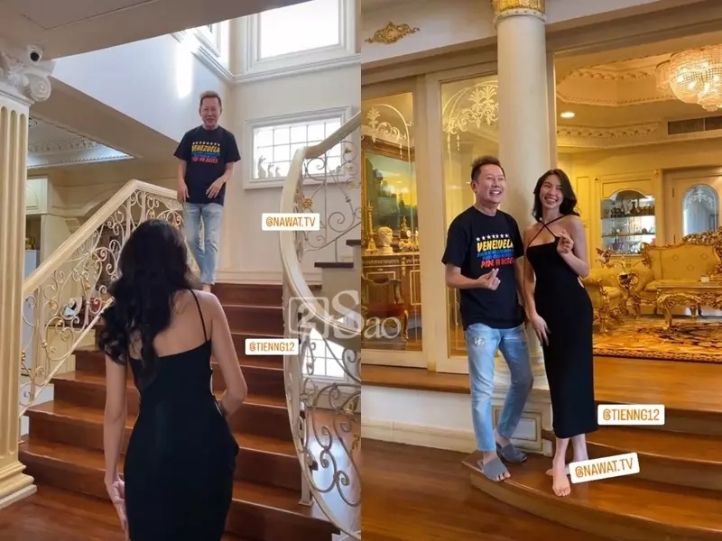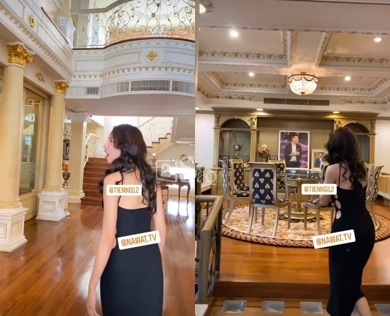 Người đẹp từng có dịp ghé thăm nhà của ông Nawat Itsaragrisil tại Thái Lan. Nhiều người không khỏi choáng ngợp trước cơ ngơi của Chủ tịch Nawat được ví như lâu đài, đậm chất "quý tộc", khắp nơi tỏa ra "mùi tiền". Bản thân Thùy Tiên cũng liên tục há hốc khi tham quan biệt thự này.