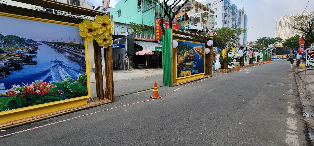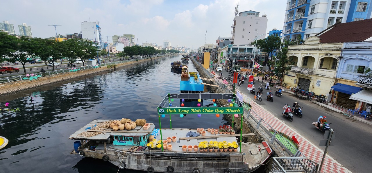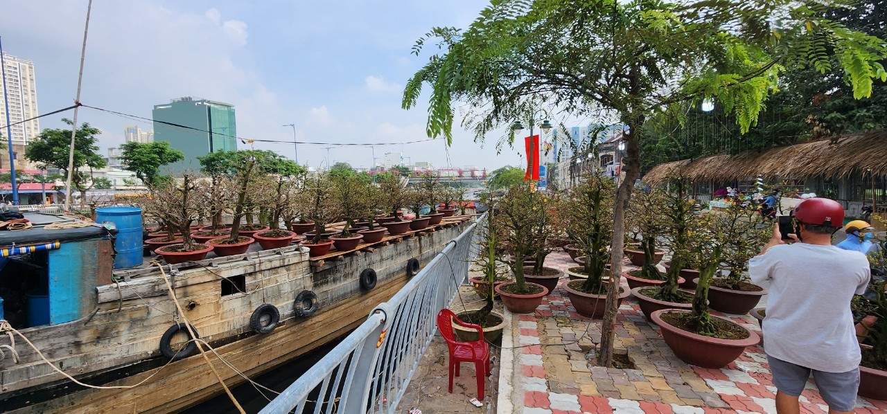 Theo ghi nhận của PV Thương Trường vào chiều 14 và sáng 15/1/2023, trên con đường Bến Bình Đông và dưới dòng kênh Tàu Hủ (quận 8, TP.HCM) nơi diễn ra Chợ Hoa Xuân “Trên bến dưới thuyền” Tết Quý Mão 2023 đã bắt đầu nhộn nhịp.