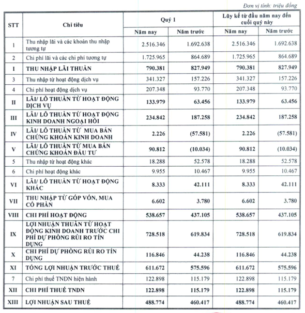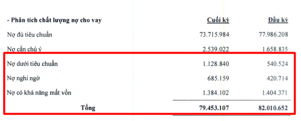 Dư nợ cho vay khách hàng giảm 3,1% xuống 79.453 tỷ. Chất lượng nợ vay cũng suy yếu khi tổng nợ xấu tại thời điểm 31/03/2023 ghi nhận hơn 3.198 tỷ đồng, tăng 35% so với đầu năm.