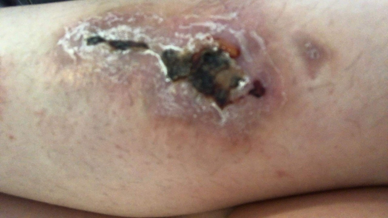 Thế nhưng, sau khi ra về, A. lập tức bị dị ứng kèm theo sốt không rõ nguyên nhân. Phần sẹo bị đốt ở chân ngày càng sưng tấy, mưng mủ.