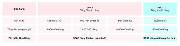 Phí xử lý đơn hàng được quy định ở mức cố định 3.000 đồng (đã bao gồm thuế) cho mỗi đơn hàng giao thành công, không phân biệt giá trị hay số lượng sản phẩm trong đơn. Đáng chú ý, khoản phí này sẽ không được hoàn lại ngay cả khi đơn hàng phát sinh hoàn tiền hoặc trả hàng sau đó.