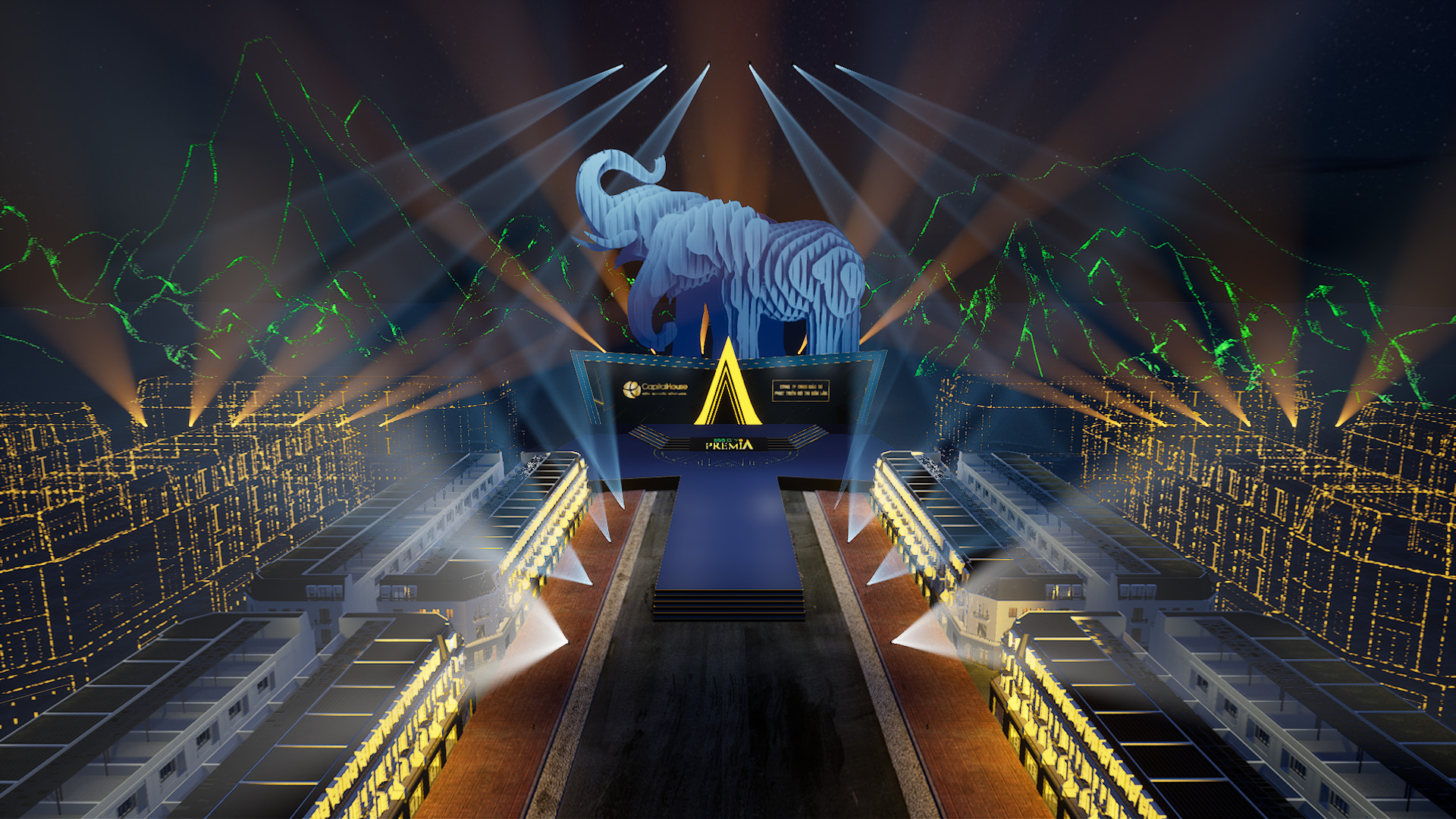 Sân khấu ảo được đầu tư công phu, hoành tráng nhằm mang đến cái nhìn thực tế, sống động nhất về dự án cho khách hàng tham dự sự kiện.