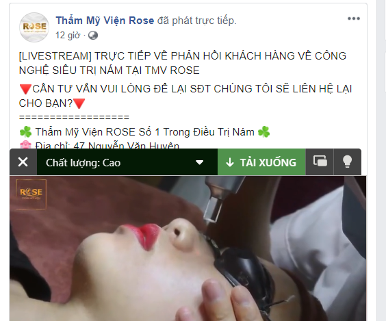Để thu hút sự quan tâm cũng như lấy lòng tin từ khách hàng, TMV ROSE đã phát trực tiếp về "công nghệ siêu trị nám" của mình thông qua mạng xã hội Facebook Khi PV nêu ra bằng chứng thể hiện Thẩm mỹ viện Rose quảng cáo vượt quá khả năng cũng như giấy phép hoạt động trên trang web thì bà Phương liên tục tìm cách thoái thác rằng họ không triển khai nhằm phủi trách nhiệm. Đại diện Thẩm mỹ viện Rose nêu lý khôi hài rằng trang web https://thammyvienrose.com và các quảng cáo vượt phép trên trang này tại địa chỉ 47 Nguyễn Văn Huyên không phải của họ.