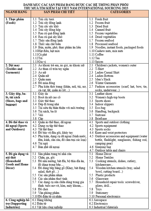 Danh mục sản phẩm đang được các hệ thống phân phối, thu mua tìm kiếm tại Việt Nam. Ảnh: Bộ Công Thương