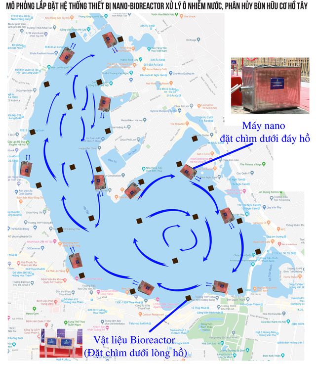 Như vậy, giải pháp này sẽ đảm bảo nước thải từ các cống sẽ được xử lý tại chỗ tại bể ngầm dưới đất bằng hệ thống Nano-Bioreactor nhóm thứ 1 tạo ra nước đạt QCVN rồi mới chảy vào sông Tô Lịch. Trong trường hợp phát sinh nước thải tràn vào lòng sông thì vẫn có hệ thống Nano-Bioreactor nhóm thứ 2 đặt ở giữa sông (có tính toán hợp lý, khoa học theo công thức tính toán của phát minh tại Nhật Bản) để xử lý mùi, chất ô nhiễm và phân hủy bùn hữu cơ ở trong lòng sông, tạo dòng chảy cho sông Tô Lịch.