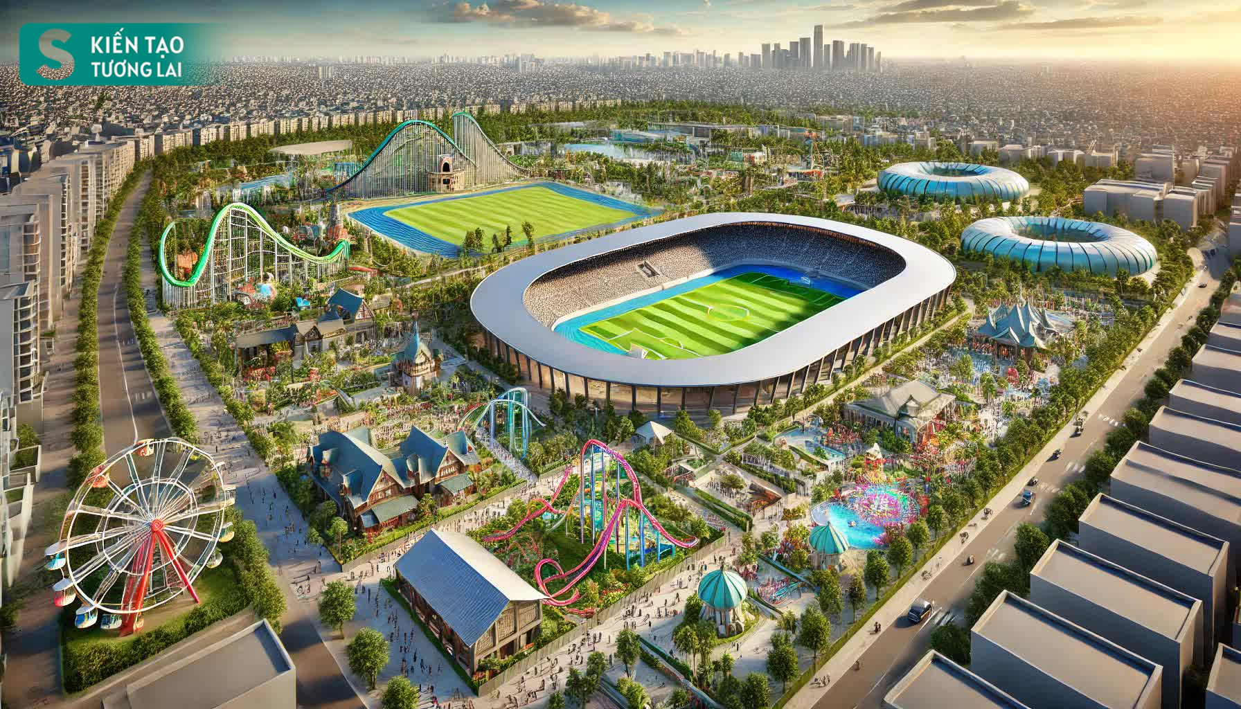 Trong đó, tổ hợp thể thao tiêu chuẩn thế vận hội Olympic với tổng vốn đầu tư dự kiến khoảng 1,3 tỷ USD, gồm các công trình thể thao đạt chuẩn quốc tế với điểm nhấn là sân vận động (SVĐ) sức chứa 60.000 người, được đầu tư xây dựng hiện đại, đẳng cấp Tổ hợp công viên chuyên đề, vui chơi giải trí có tổng vốn đầu tư khoảng 3,2 tỷ USD, bao gồm các công viên chuyên đề, khu vui chơi giải trí theo mô hình nổi tiếng trên thế giới. Dự án sẽ trở thành công viên giải trí quy mô bậc nhất Việt Nam và là điểm đến vui chơi giải trí hàng đầu cho người dân trong nước và khu vực.