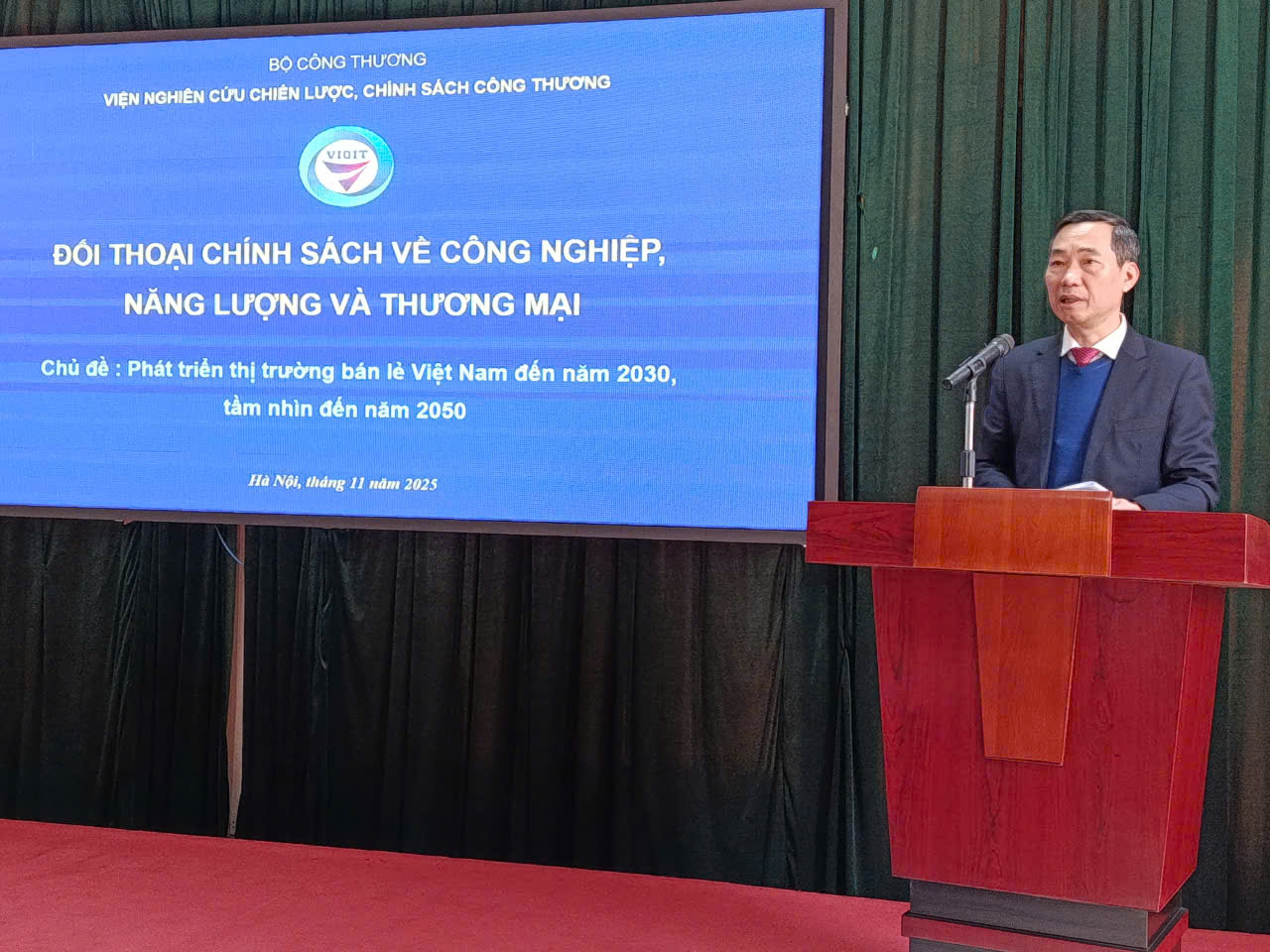 Ngày 20/11/2025, Tọa đàm “Phát triển thị trường bán lẻ Việt Nam đến năm 2030, tầm nhìn đến năm 2050” do Viện Nghiên cứu Chiến lược, Chính sách Công Thương (VIOIT) tổ chức đã thu hút sự tham gia của các nhà quản lý, chuyên gia, nhà khoa học, đại diện doanh nghiệp và hiệp hội bán lẻ. Sự kiện nhằm trao đổi, phân tích thực trạng và đề xuất giải pháp phát triển thị trường bán lẻ Việt Nam trong bối cảnh hội nhập quốc tế, chuyển đổi số và áp dụng các công nghệ mới. Tọa đàm cũng tạo cơ sở cho việc triển khai Quyết định số 2326/QĐ-TTg của Thủ tướng Chính phủ về Chiến lược phát triển thị trường bán lẻ Việt Nam.