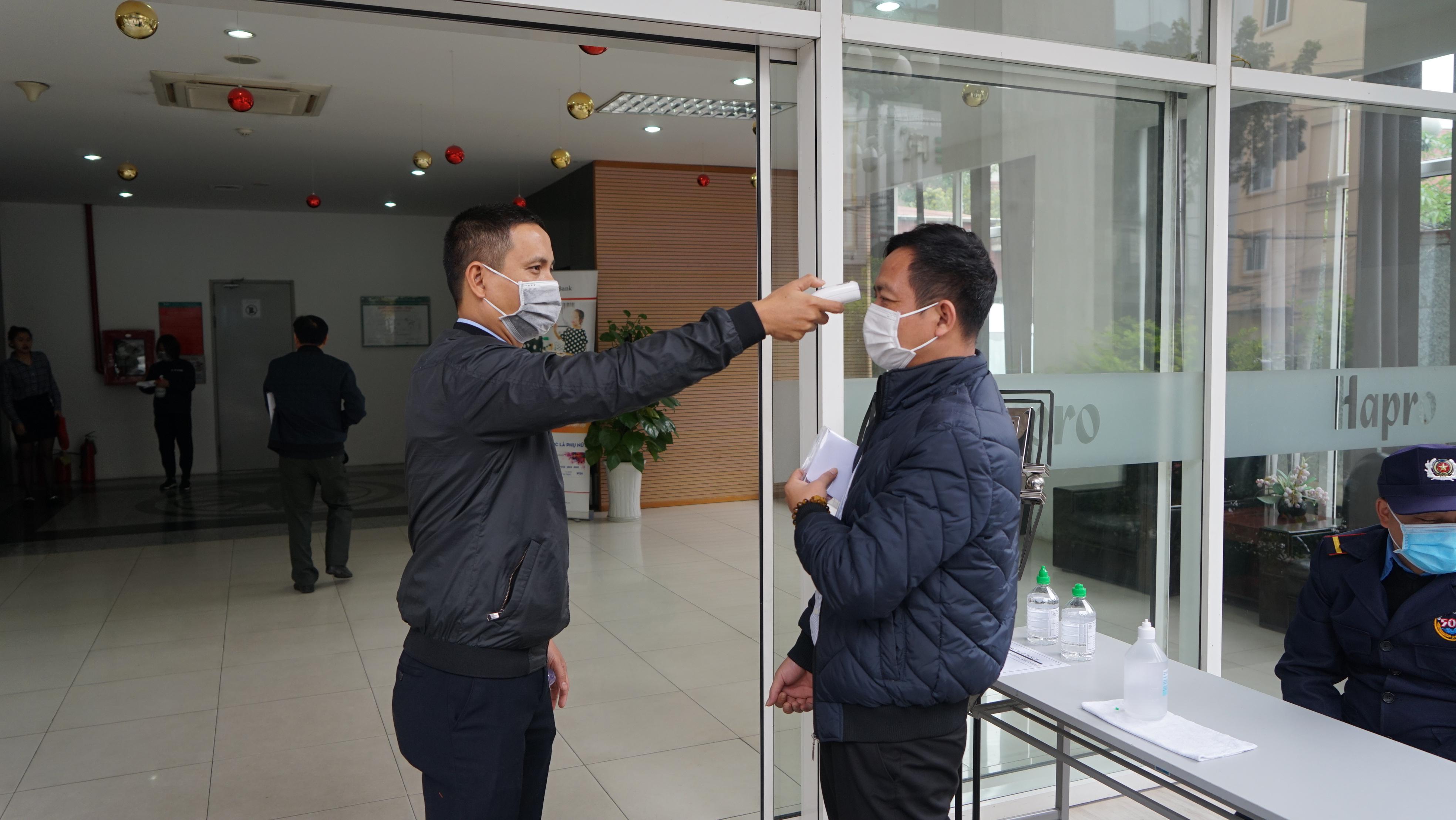 Ban quản lý tòa nhà Hapro yêu cầu nhân viên, khách đến phải đeo khẩu trang, rửa tay bằng nước sát khuẩn, tuân thủ đo nhiệt độ cơ thế trước khi bước vào tòa nhà. Đặc biệt, tại tòa nhà này, ban quản lý đã tăng cường nhân viên, bọc màng chắn nắm tay cửa, bọc màng chắn nút bấm thang máy, thay và vệ sinh định kỳ 1 tiếng/lần.