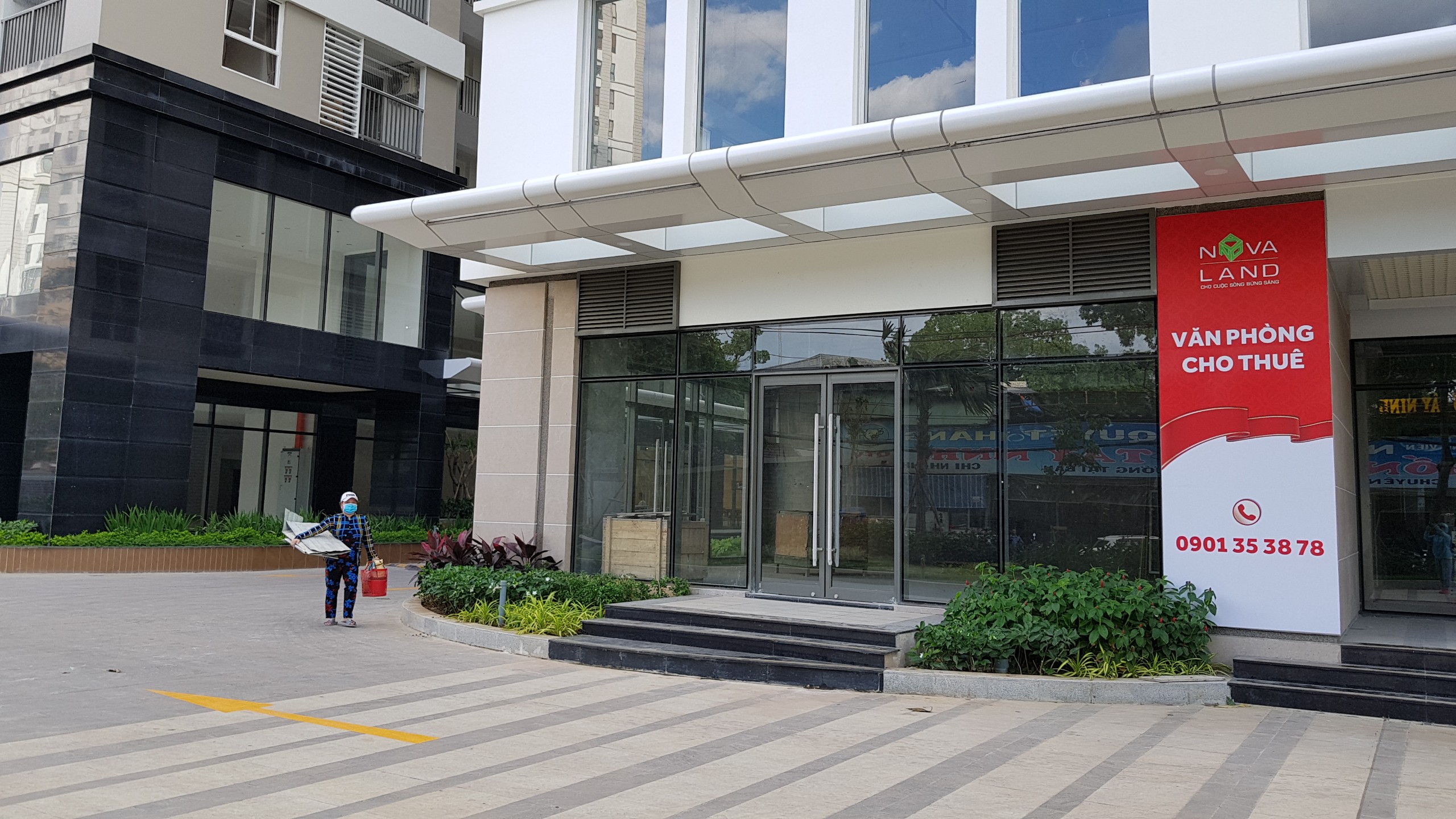 | Novaland căng băng-rôn cho thuê văn phòng (Ảnh: Khổng Chiêm) |