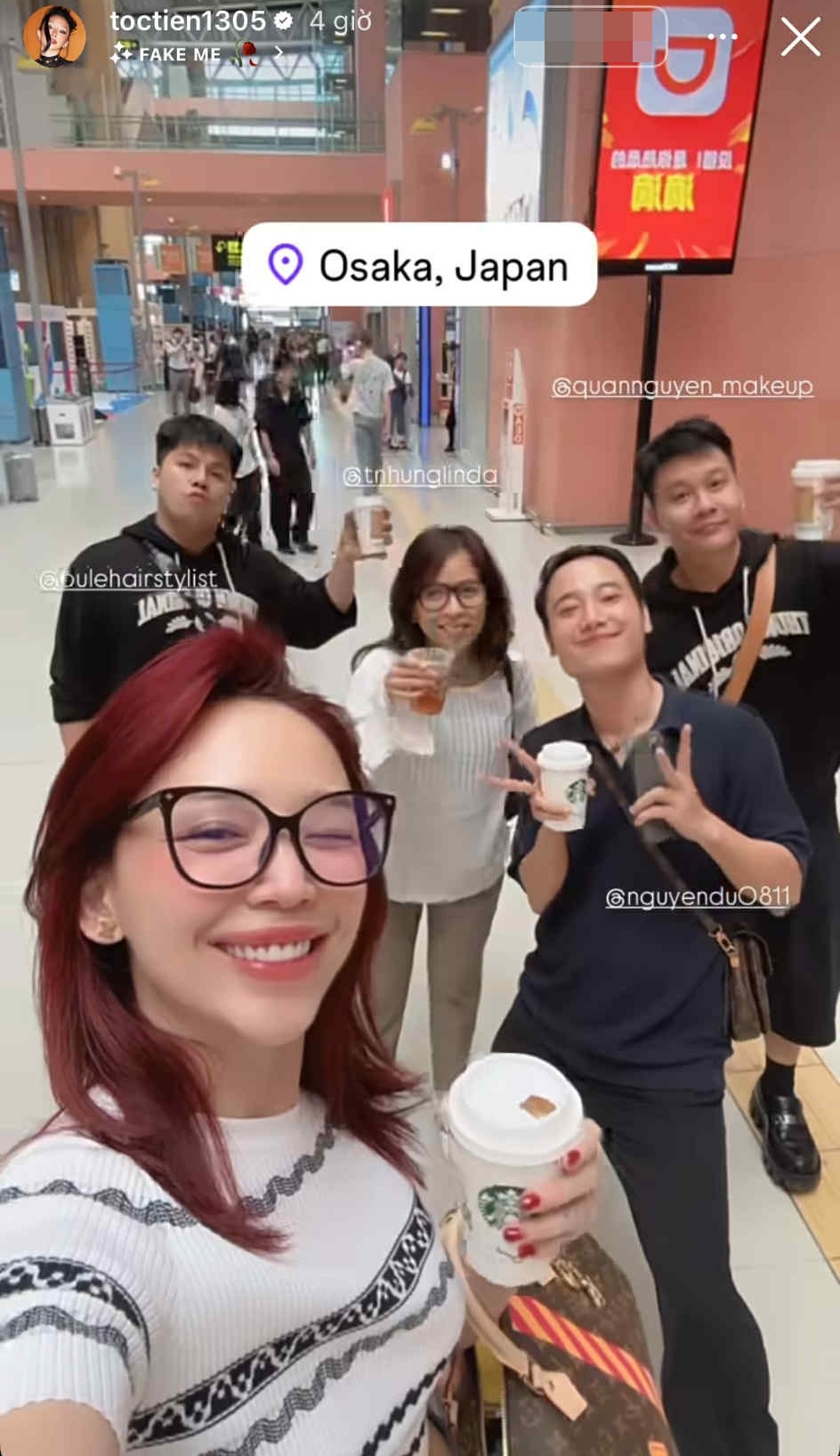Mới đây, Tóc Tiên đăng tải hình ảnh mới trên story Instagram, tiết lộ cô đang ở Nhật Bản. Trong ảnh, nữ ca sĩ chụp cùng ê kip gồm tạo mẫu tóc, quản lý và stylist.