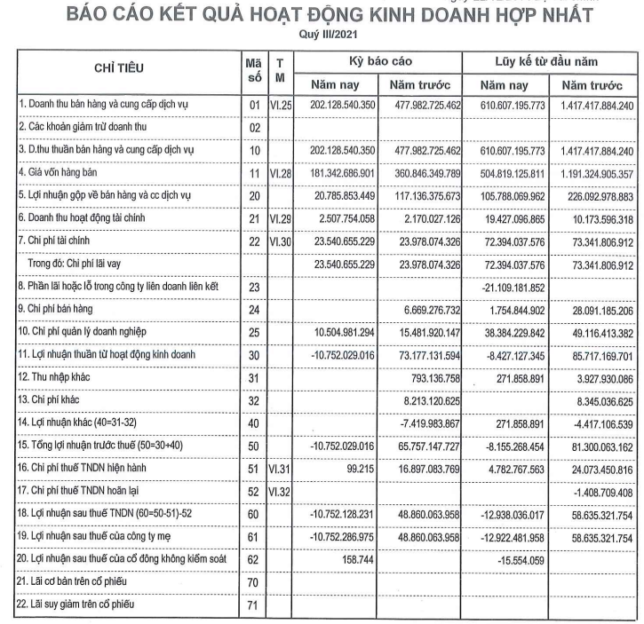 Trong quý công ty vẫn duy trì khoản chi trả lãi vay hơn 23 tỷ đồng như cùng kỳ, do đó, lỗ sau thuế quý 3 ghi nhận ở mức 10,7 tỷ đồng, trái ngược với khoản lãi gần 50 tỷ đồng cùng kỳ năm trước.