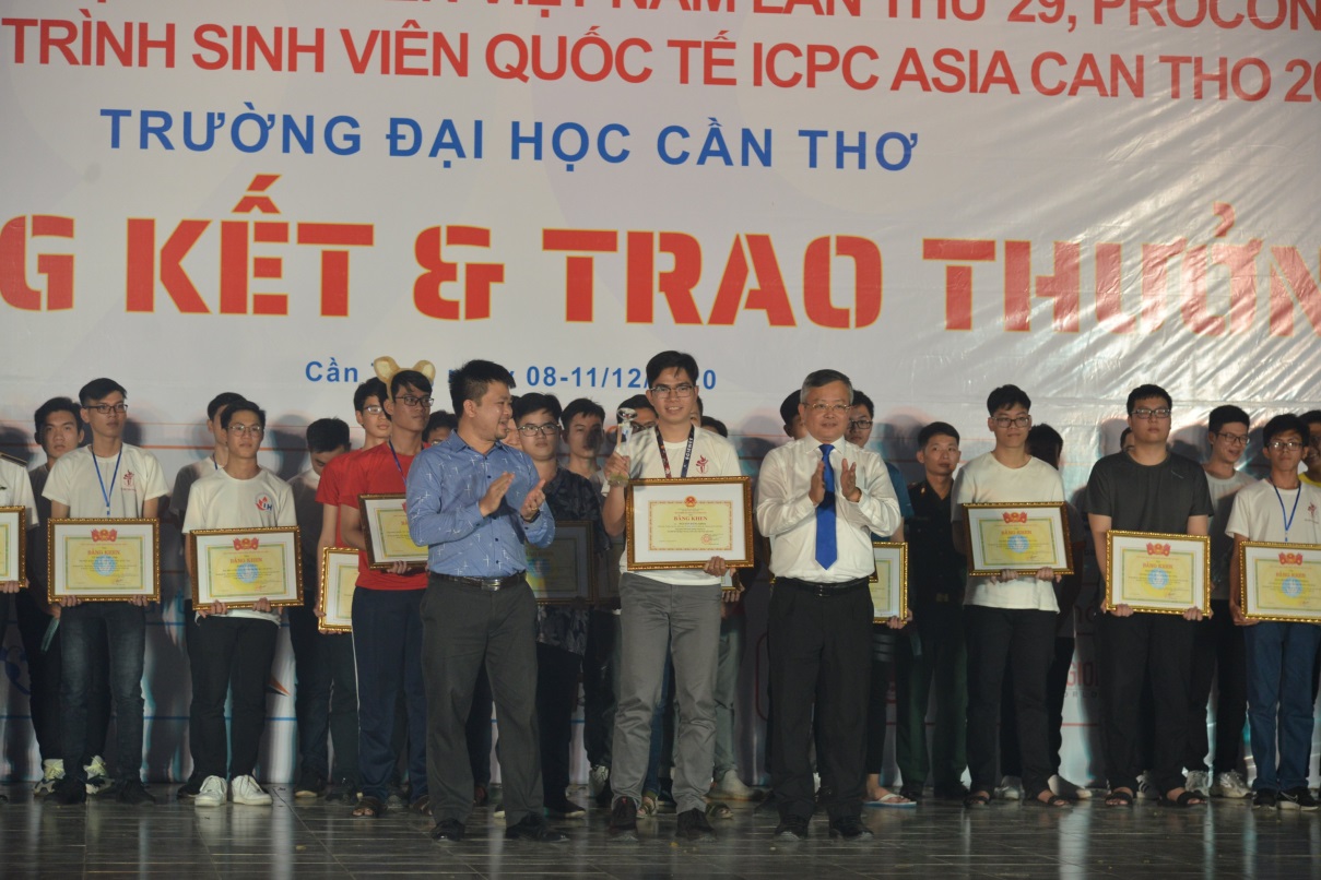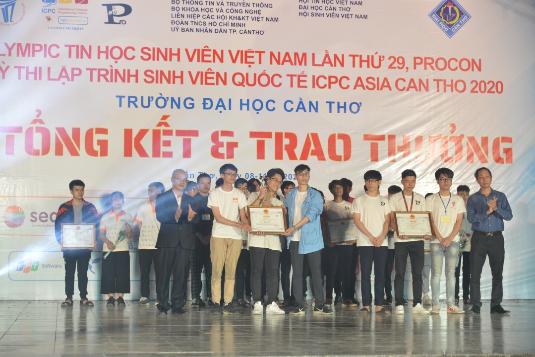Olympic Tin học Sinh viên Việt Nam lần thứ 29 (OLP’20), PROCON và kỳ thi ICPC Asia Can Tho - do ĐH Cần Thơ đăng cai tổ chức từ 8 - 11/12/2020 đã thành công tốt đẹp. Ngôi vô địch ICPC Asia Can Tho 2020 thuộc về đội tuyển EggCentroy trường Đại học Công nghệ, ĐHQG Hà Nội, Siêu CUP OLP’20 ngôi Vô địch thuộc về Lê Minh Quang đến từ Đại học Bách Khoa Hà Nội lần thứ 2 liên tiếp vô địch Siêu CUP.