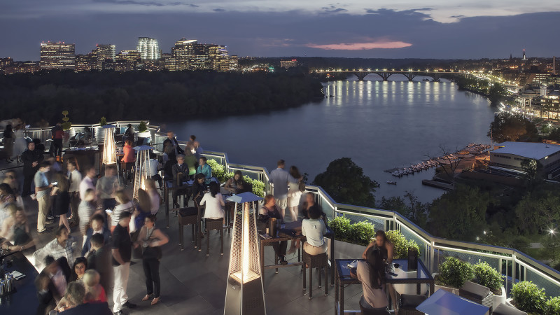 Ngắm nhìn cảnh sắc hai bên bờ sông Potomac từ Top of the Gate Skybar