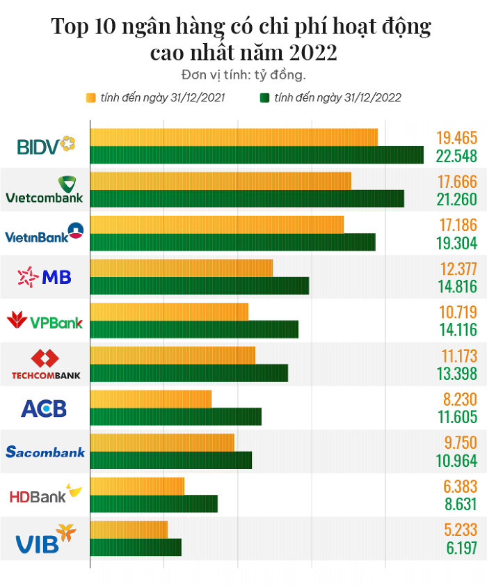 Top 10 ngân hàng có chi phí hoạt động năm 2022.