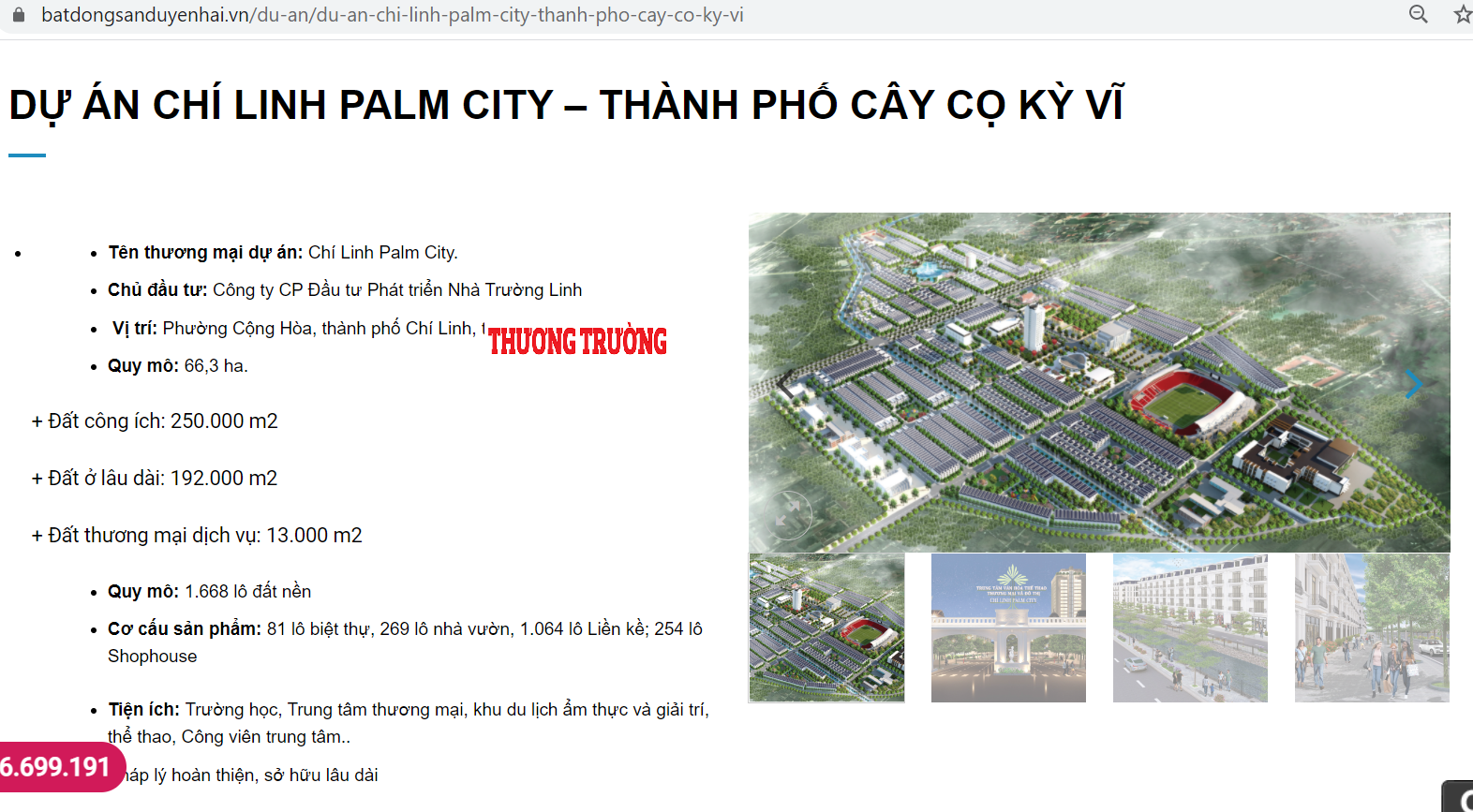 Thời gian gần đây xuất hiện nhiều thông tin quảng cáo, rao bán liên quan đến dự án Khu đô thị Chí Linh Palm City với quy mô 66,3 ha. Tuy nhiên, UBND TP Chí Linh khẳng định trên địa bàn không có dự án nào mang tên như vậy.