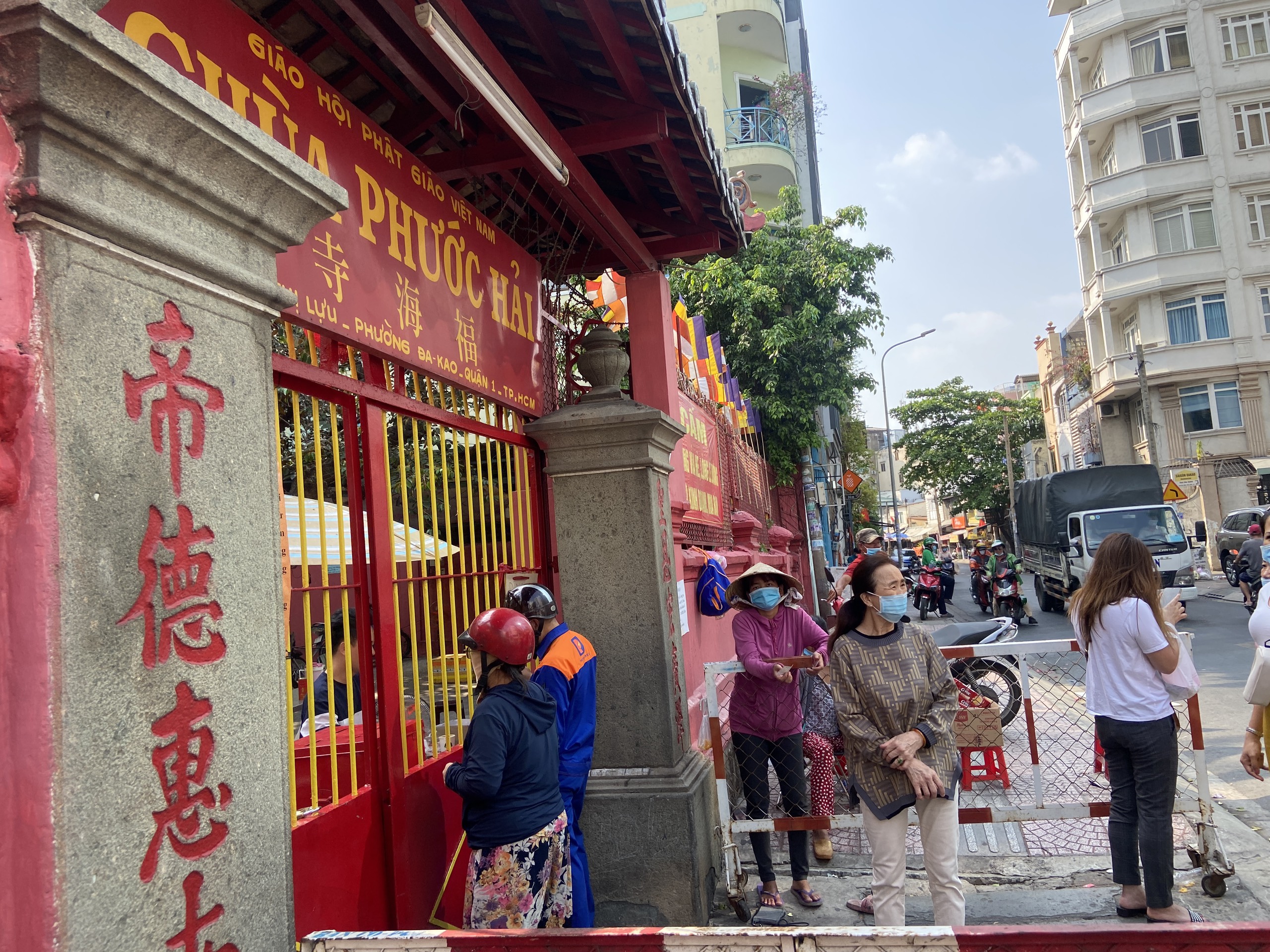 Tại chùa Phước Hải, quận 1 không nhận khách vào bên trong chùa.