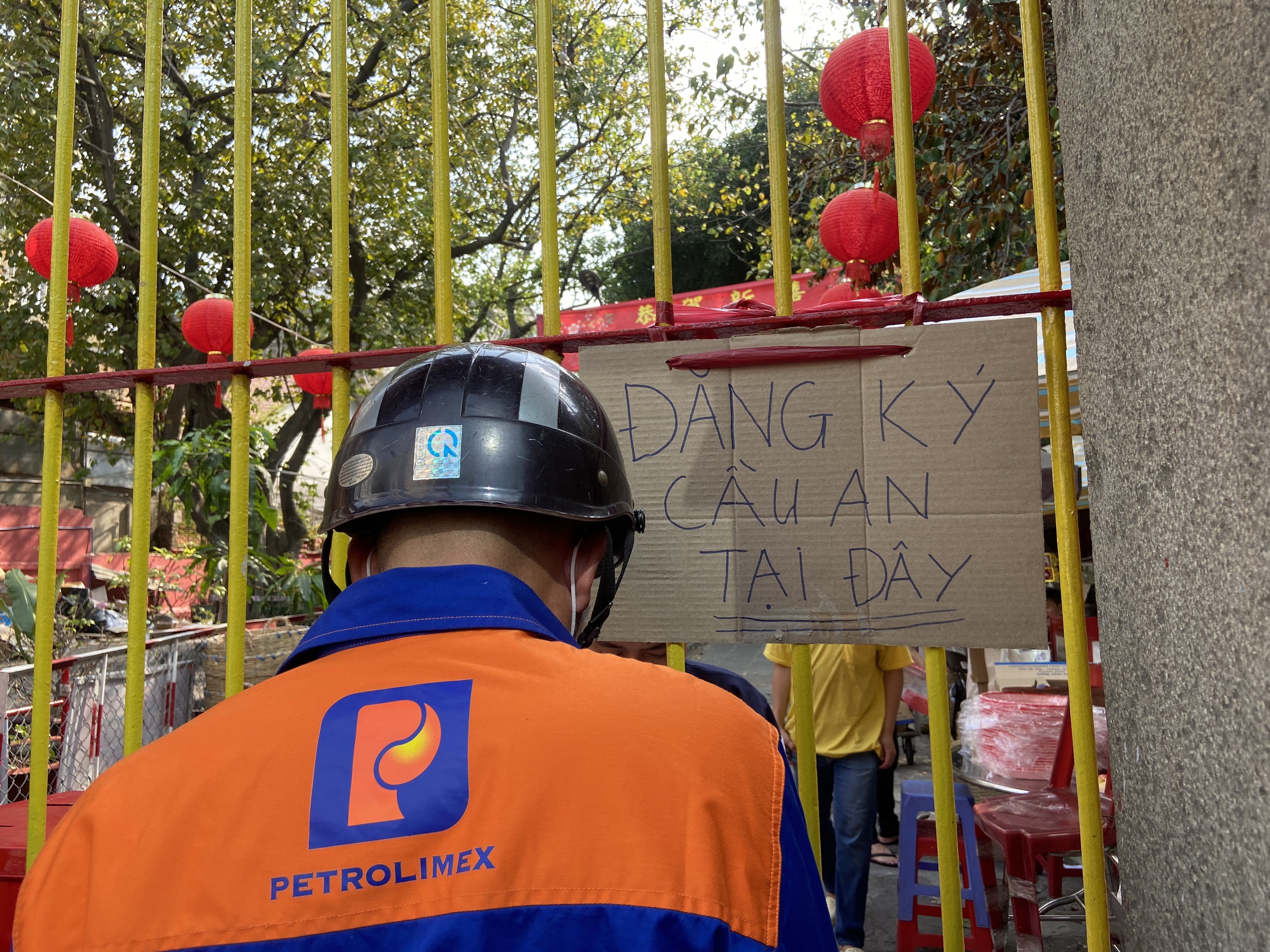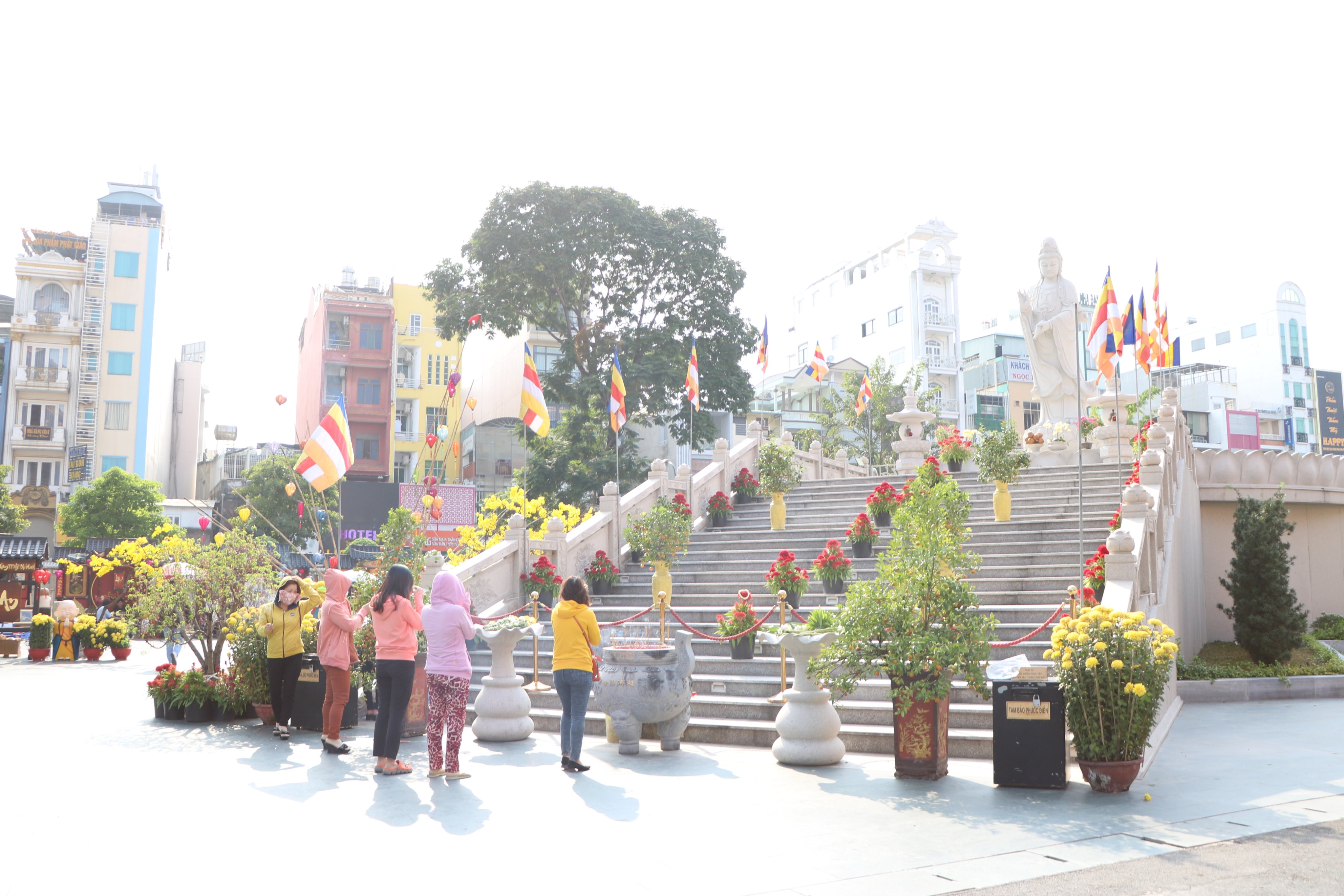 Chùa Vĩnh Nghiêm, quận 1 cũng nghiêm khắc trong việc đảm bảo an toàn cho người dân khi đến cúng rằm tháng Giêng.