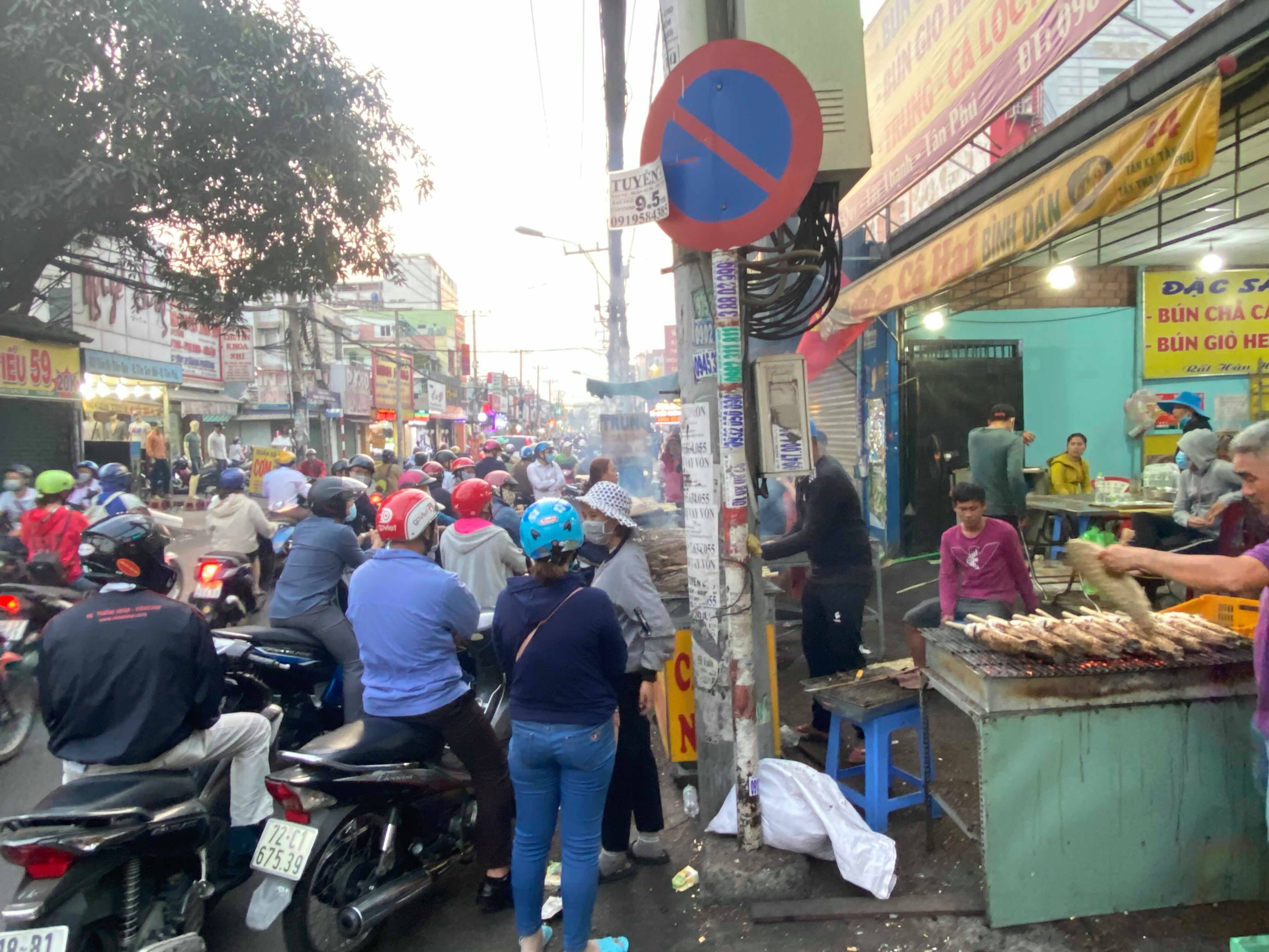Tại "Con đường cá lóc nướng" nằm trên đường Tân Kỳ Tân Quý, Q. Tân Bình (TP. HCM) luôn tấp nập, người dân chen chúc, xếp hàng chờ mua cá lóc để cúng cầu mong một năm luôn được tài lộc.