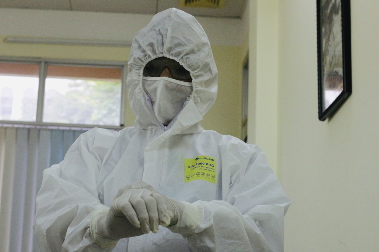 Đội ngũ y bác sĩ đảm bảo nghiêm ngặc về khâu bảo hộ và sát trùng trước khi vào phòng cách ly.