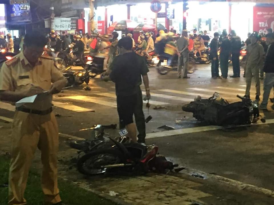 Chiếc xe gây tai nạn chỉ dừng lại khi đâm vào cột điện bên đườngTại hiện trường hàng loạt xe máy bị đâm văng nằm rải rác và chồng lên nhau. Chiếc ôtô gây tai nạn chỉ dừng lại khi đâm vào cột điện bên đường. Sau khi gây tai nạn tài xế đã nhanh chóng rời khỏi hiện trường.