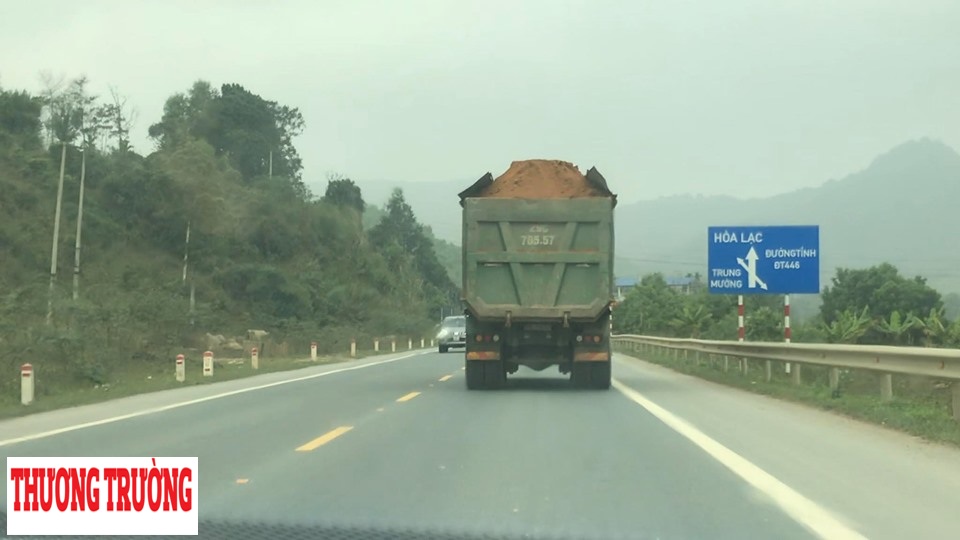 Xe chở đất khai thác không che chắn gây ô nhiễm và nguy hiểm cho người tham gia giao thông