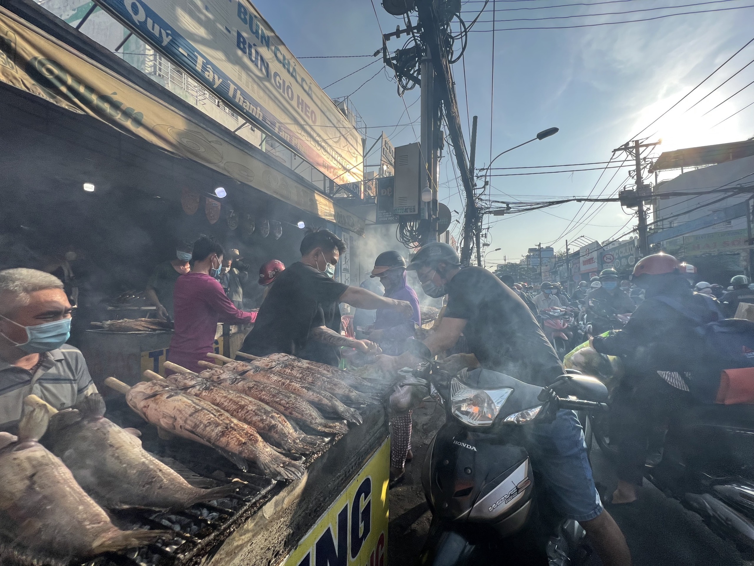 Theo quan niệm của người dân, mua cá lóc nướng về cúng ngày vía Thần Tài sẽ giúp mang lại tài lộc, sung túc và nhiều may mắn. Sáng nay, tại các tiệm cá lóc nướng trên nhiều tuyến phố của TP.HCM đều trong tình trạng đông nghẹt khách.