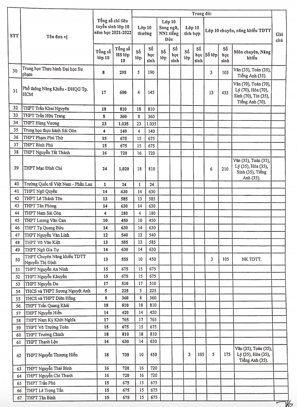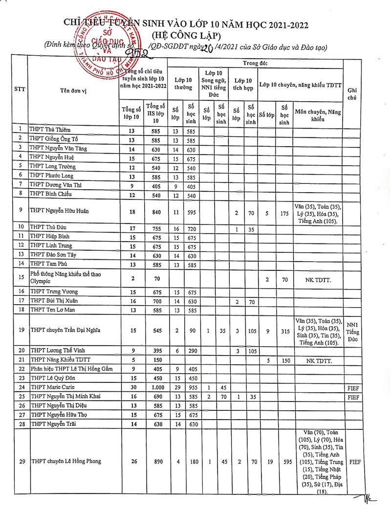 Sở GDĐT TPHCM vừa có quyết định giao chỉ tiêu tuyển sinh lớp 10 cho các trường THPT công lập trên địa bàn năm học 2021-2022.