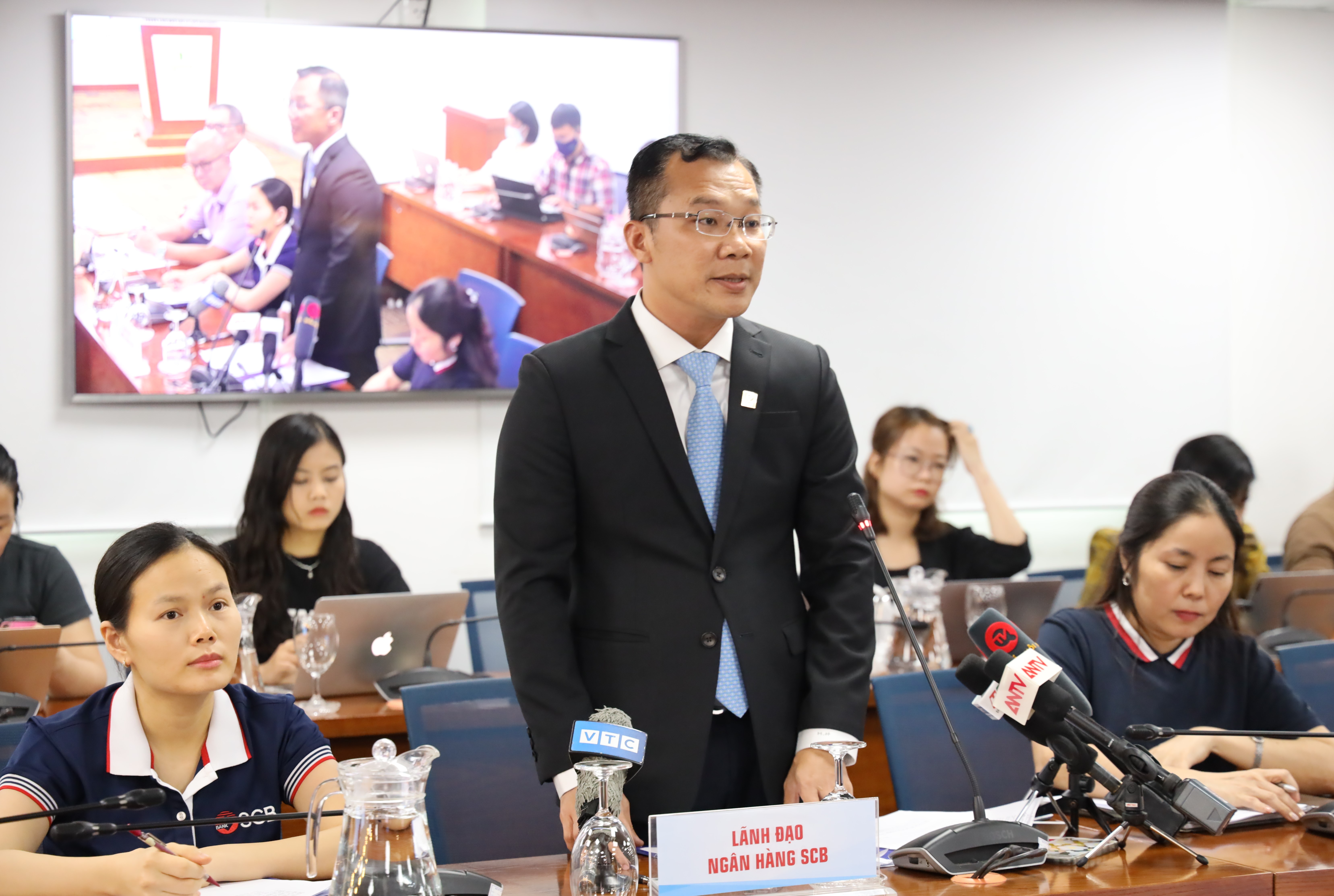 Chiều 8/10, UBND TP.HCM tổ chức Họp báo thông tin về hoạt động của Ngân hàng TMCP Sài Gòn (SCB). Phó Trưởng Ban Tuyên giáo Thành uỷ Phạm Đức Hải; Giám đốc Ngân hàng Nhà nước (NHNN) Việt Nam chi nhánh TPHCM Võ Minh Tuấn; Phó Giám đốc Sở Thông tin và Truyền thông Từ Lương chủ trì họp báo.