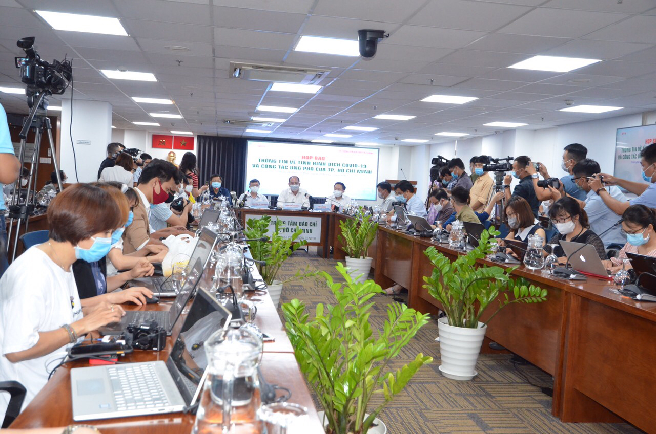 TPHCM tổ chức họp báo cung cấp thông tin về các phương án xử lý các trường hợp liên quan đến 2 ca nhiễm covid-19. Ảnh Châu Anh