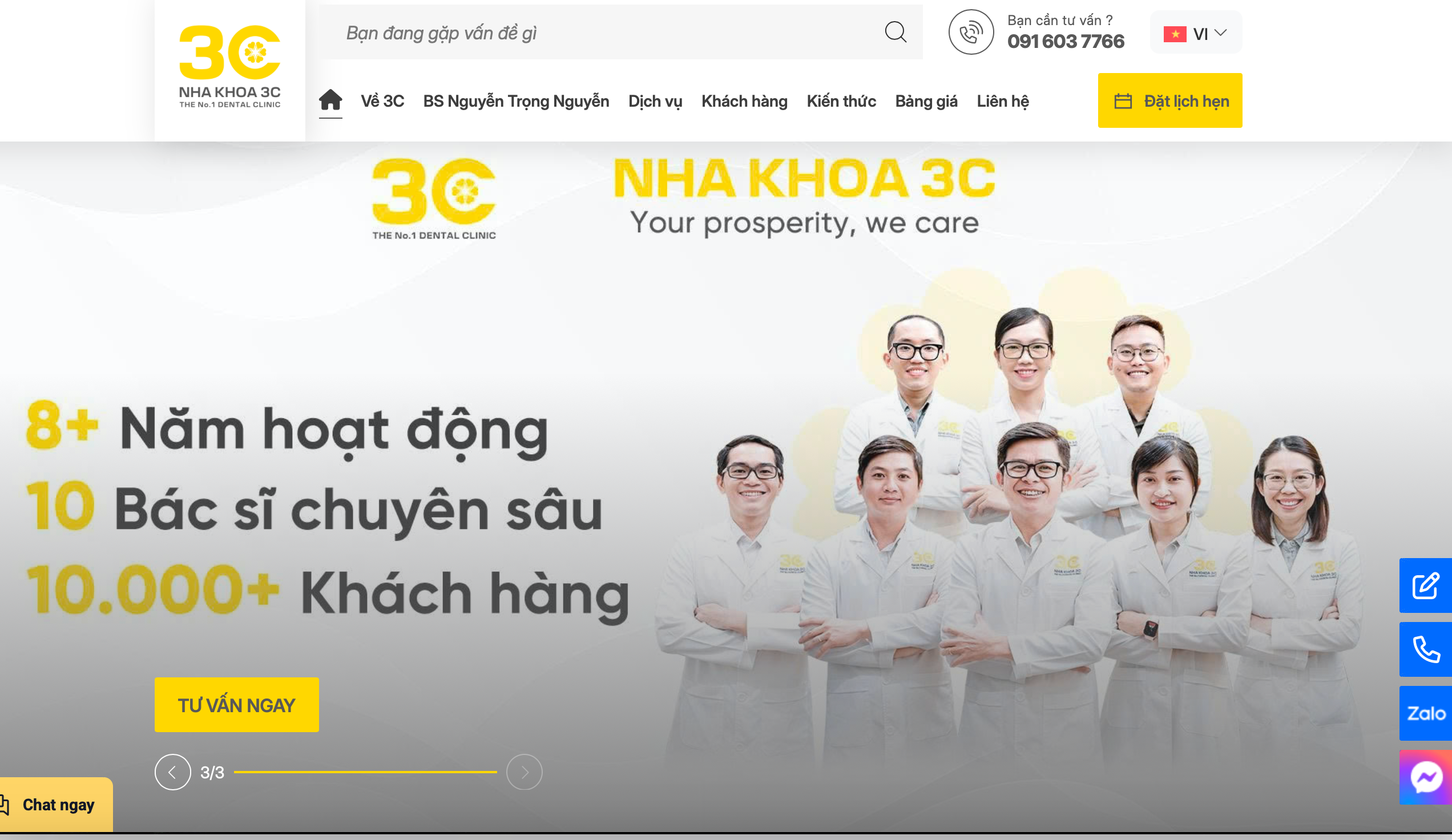Trên website chính thức https://nhakhoa3c.com, Nha khoa 3C giới thiệu nhiều dịch vụ như niềng răng, cấy ghép Implant, bọc răng sứ, dán sứ thẩm mỹ… Đồng thời, cơ sở này cũng công bố danh sách bác sĩ gồm: Nguyễn Vũ Ngọc Hằng, Đỗ Thành Tín, Trần Thị Tuyết Lan, Lê Đắc Song Minh và Nguyễn Phan Trung Hoàng.