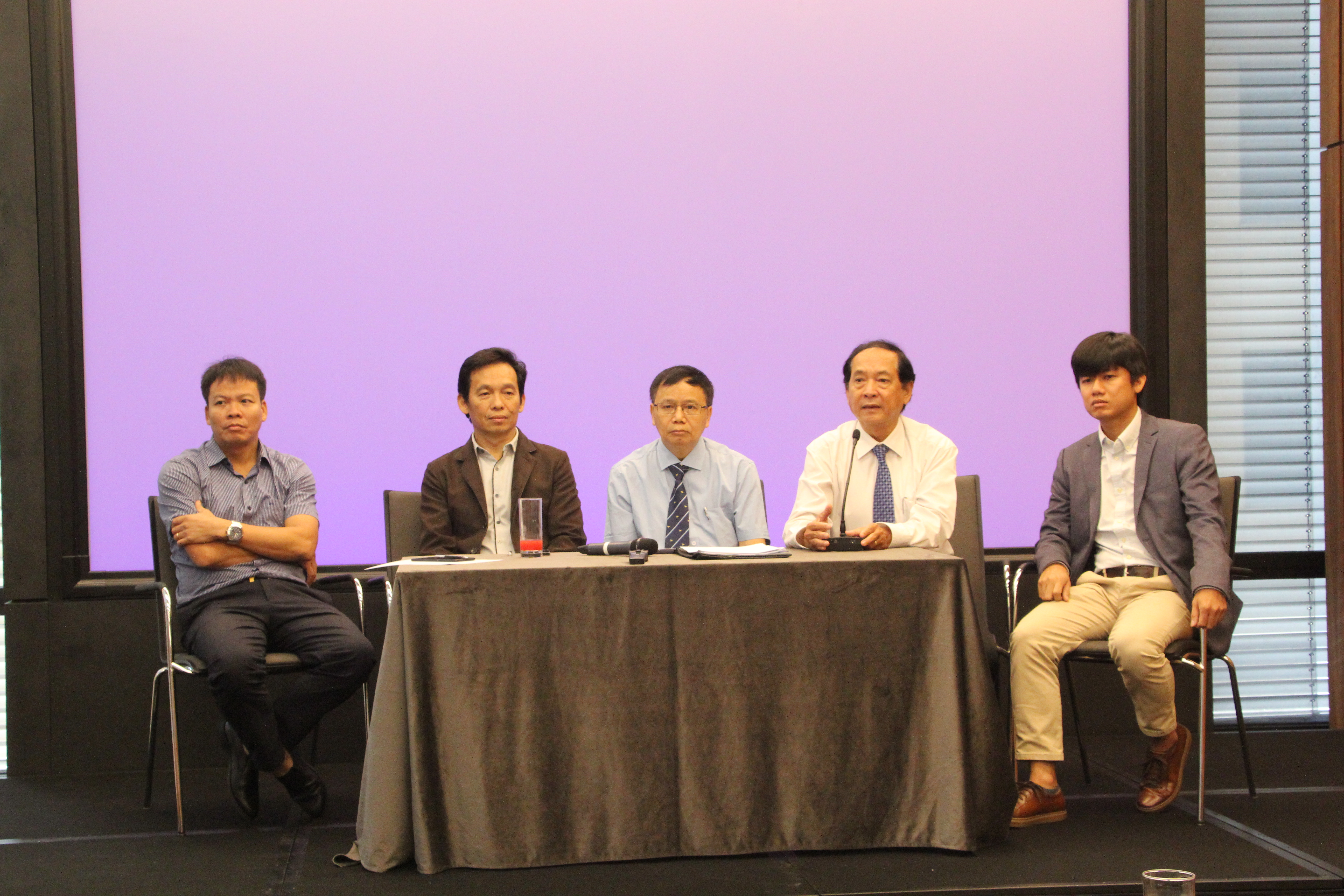 Các chuyên gia chụp ảnh lưu niệm tại buổi họp báo.