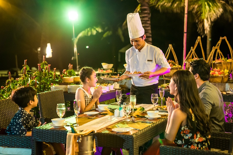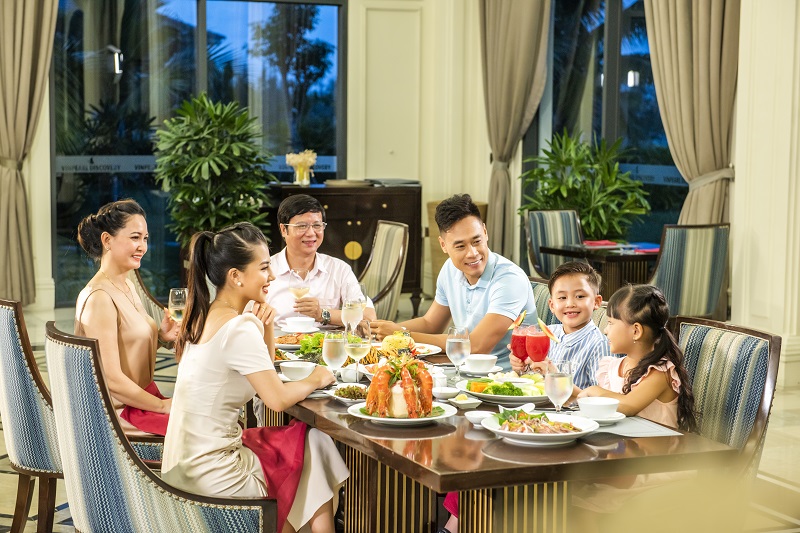Kỳ nghỉ 5 sao còn có “đặc quyền” lựa chọn bữa tiệc buffet hấp dẫn với hơn 100 món Á – Âu – Việt thay đổi theo ngày, hoặc BBQ hải sản ngay tại khuôn viên biệt thự, các set menu có lợi cho sức khỏe được phục vụ ngay tại phòng. Mối lo về “bữa ăn giấc ngủ” cho đại gia đình của các bà các mẹ sẽ được xóa bỏ để toàn tâm với những sở thích và hoạt động thư giãn riêng tại spa hồ - biển độc đáo.