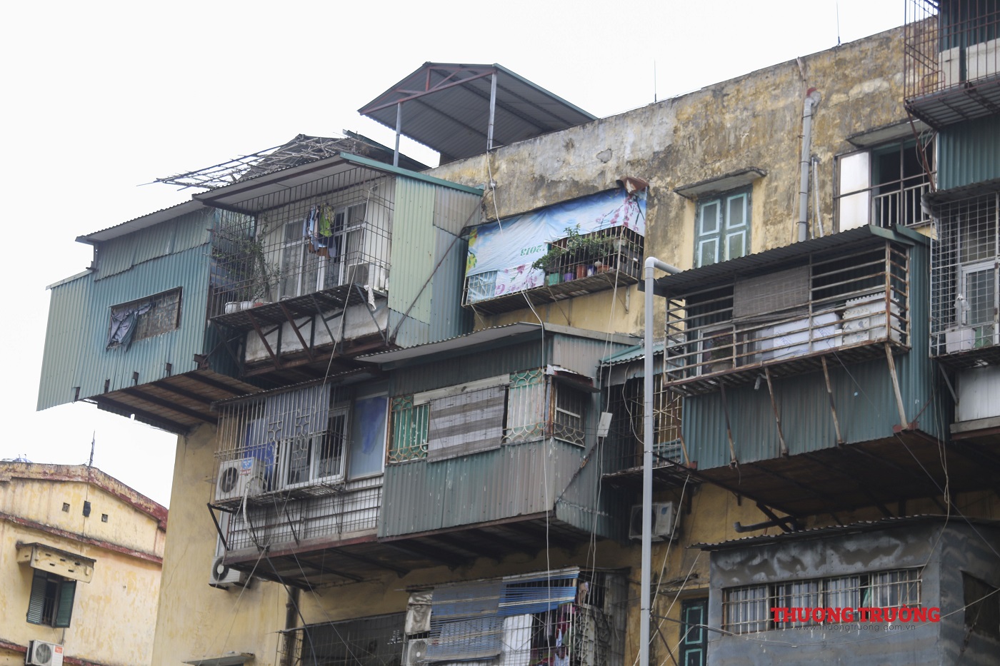 Việc cơi nới thêm phần diện tích sử dụng tại các khu chung cư, nhà tập thể cũ tạo thành những “chuồng cọp, lồng chim” lồi lõm. Điều này cũng đặt ra nhiều lo ngại về việc thoát hiểm trong các sự cố hoả hoạn.