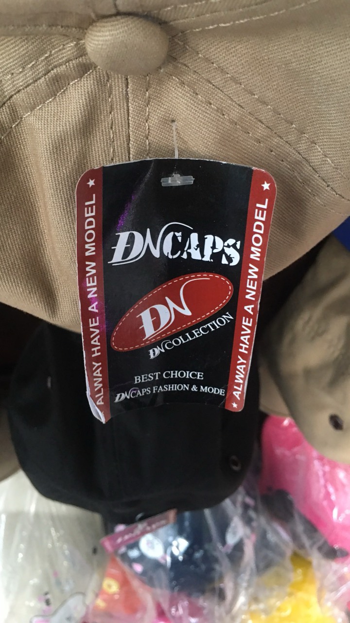 Các loại mũ được dán mác đủ loại thương hiệu được bày bán rất công khai.