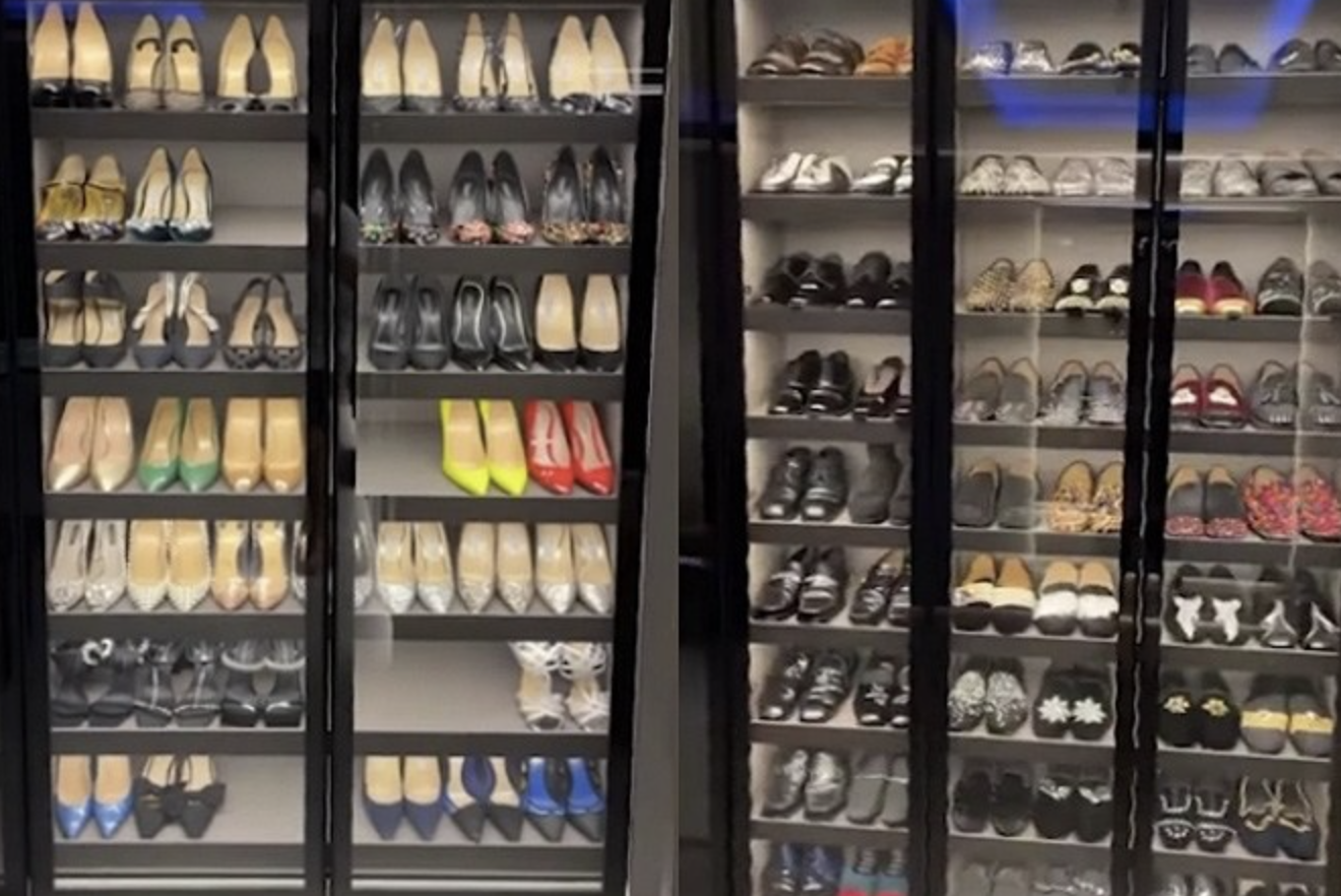 Có thể thấy, trong phòng thay đồ của nam MC là các tủ kính đựng quần áo, giày dép ngăn nắp của cả hai vợ chồng, mỗi người một khu riêng.