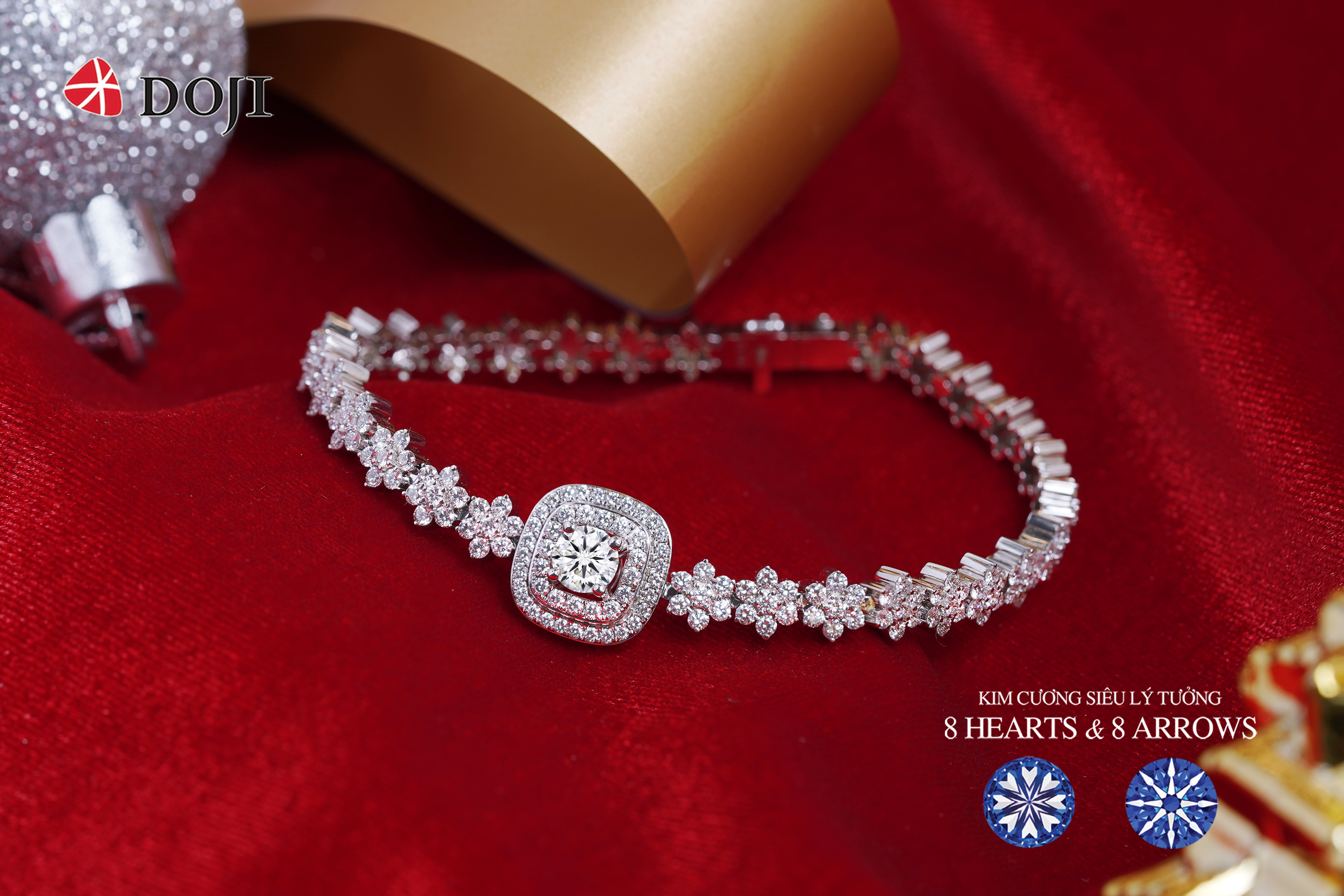 Đặc biệt, các thiết kế trang sức kim cương siêu lý tưởng 8 Hearts & 8 Arrows được DOJI tung ra thị trường với giá hấp dẫn, chỉ từ 15 triệu đồng.