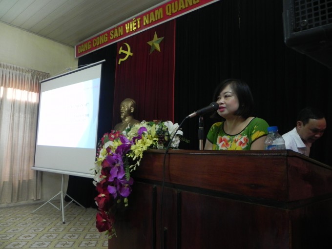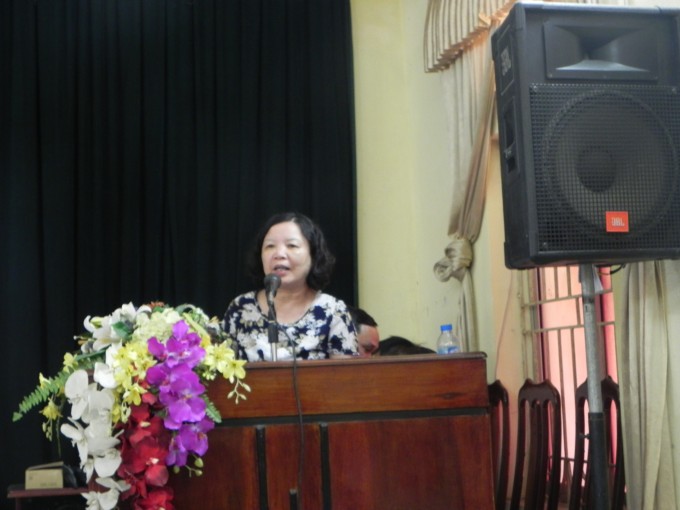 Bà Nguyễn Thị Thanh Trà TBT tạp chí Thương Trường phát biểu trong buổi trao quà./.