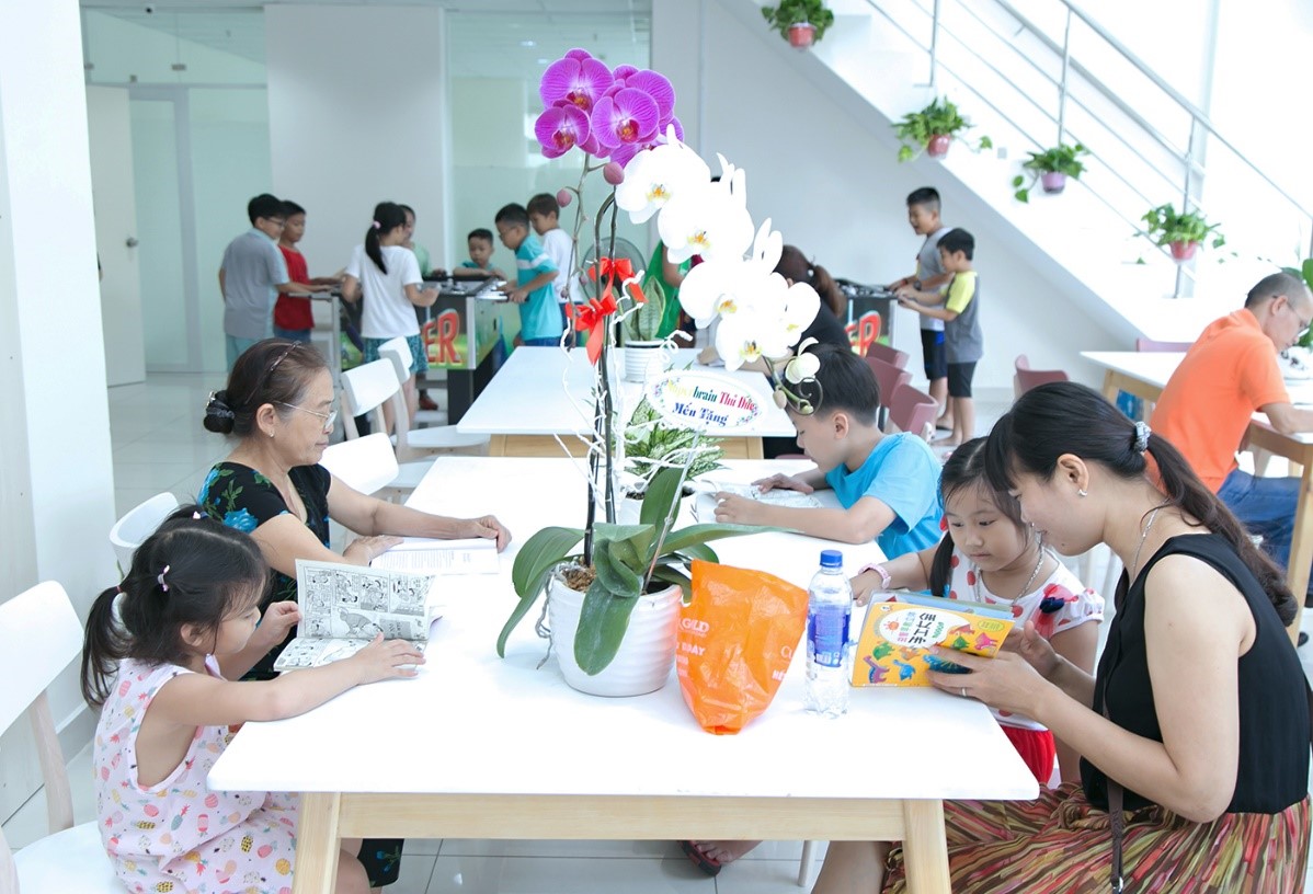 Ngoài việc trang bị cơ sở vật chất, chủ đầu tư còn huy động cư dân và nội bộ CBNV quyên góp thêm các đầu sách, phong phú về nội dung phù hợp với mọi lứa tuổi, từ sách cung cấp kiến thức, văn học, kinh nghiệm sống cho các cư dân đến sách ngoại ngữ, truyện tranh, bàn bi - lắc giải trí cho trẻ em.