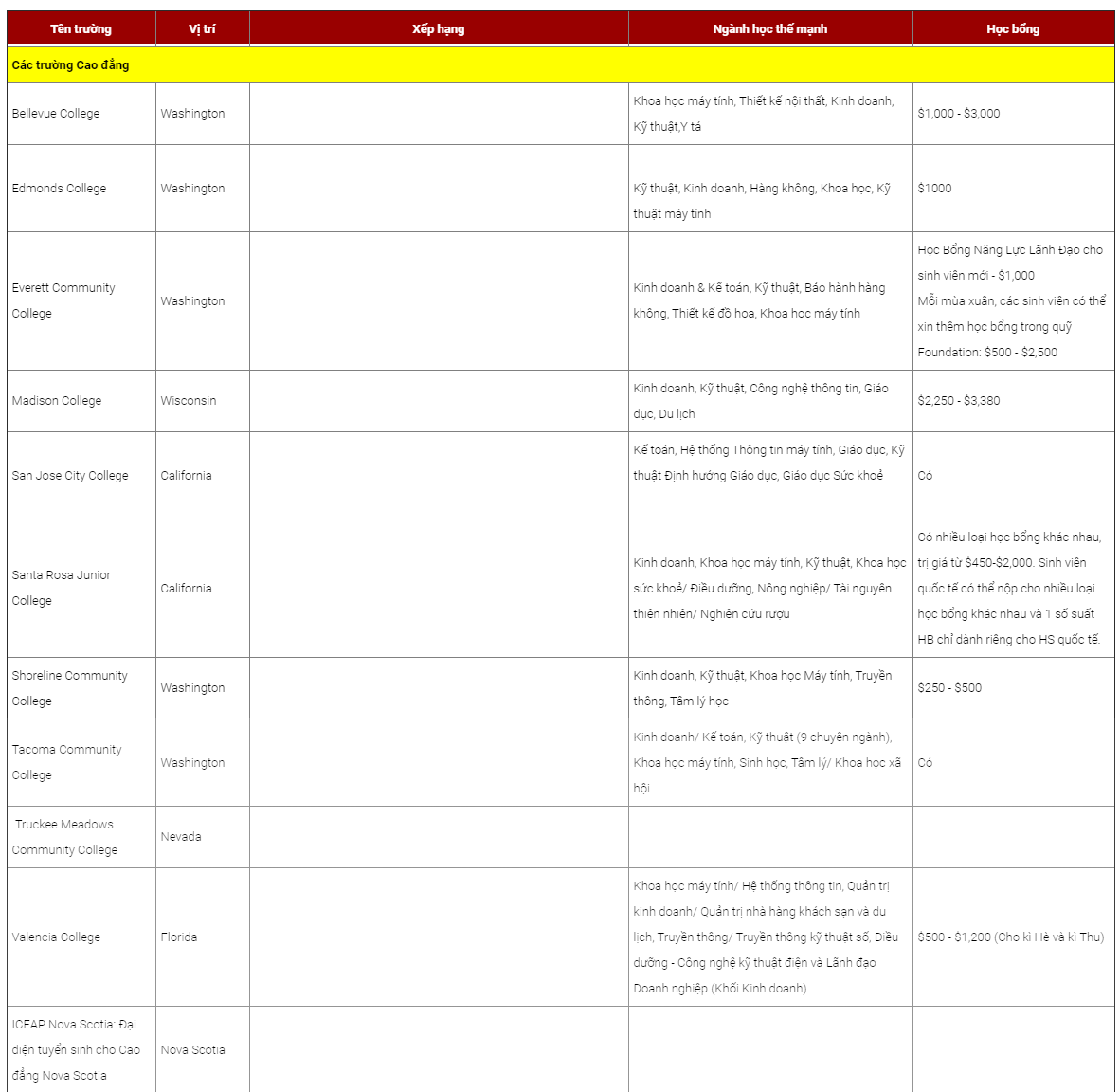 DANH SÁCH TRƯỜNG - XẾP HẠNG - NGÀNH HỌC NỔI BẬT - HỌC BỔNG