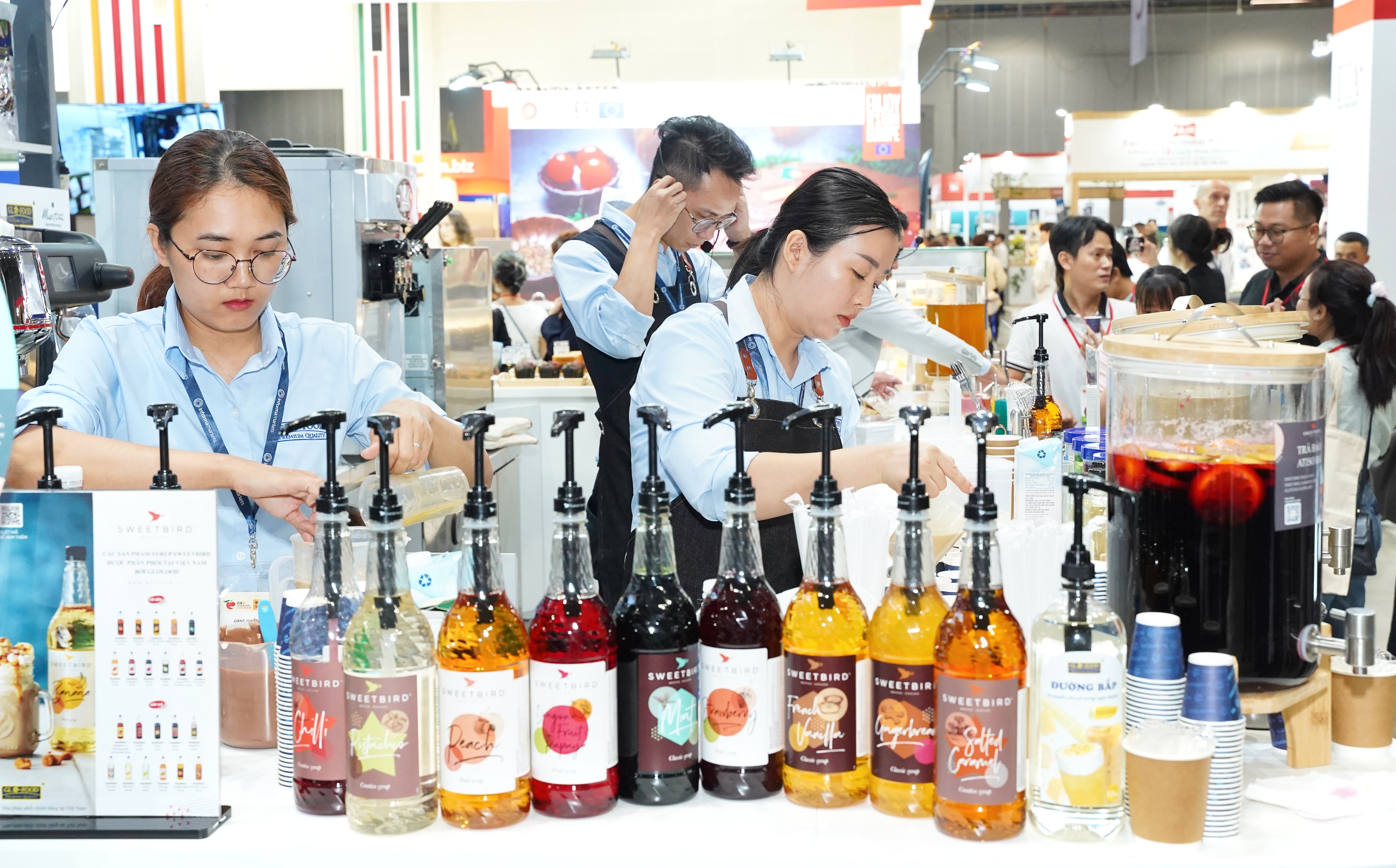 Food & Hotel Vietnam 2024 hàng trăm gian hàng trưng bày vô cùng đa dạng về sản phẩm bánh mì, bánh ngọt & kem; trà, cà phê; thực phẩm & đồ uống.