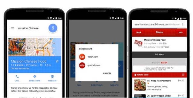 Bắt đầu từ 23/5, người dùng Android và iOS tại Mỹ sẽ thấy nút Order Online khi sử dụng Google Search, Google Maps để tìm tên nhà hàng hoặc món ăn. Ngoài ra, trợ lý ảo Assistant cũng có thể “gọi món” nếu được ra lệnh.