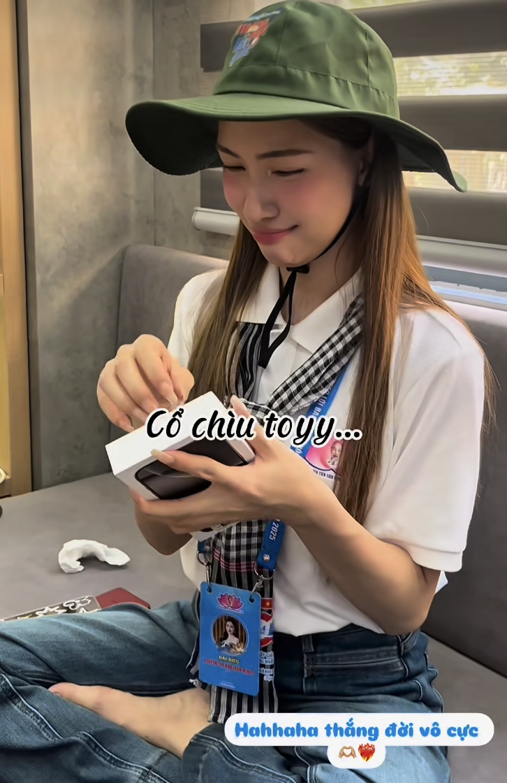 Hòa Minzy viết: “Nhân dịp sinh nhật lần thứ 29 của em, vì em vẫn chưa có bồ để được mua điện thoại mới. Thì nhân dịp này, chị xin trân trọng tặng em”.