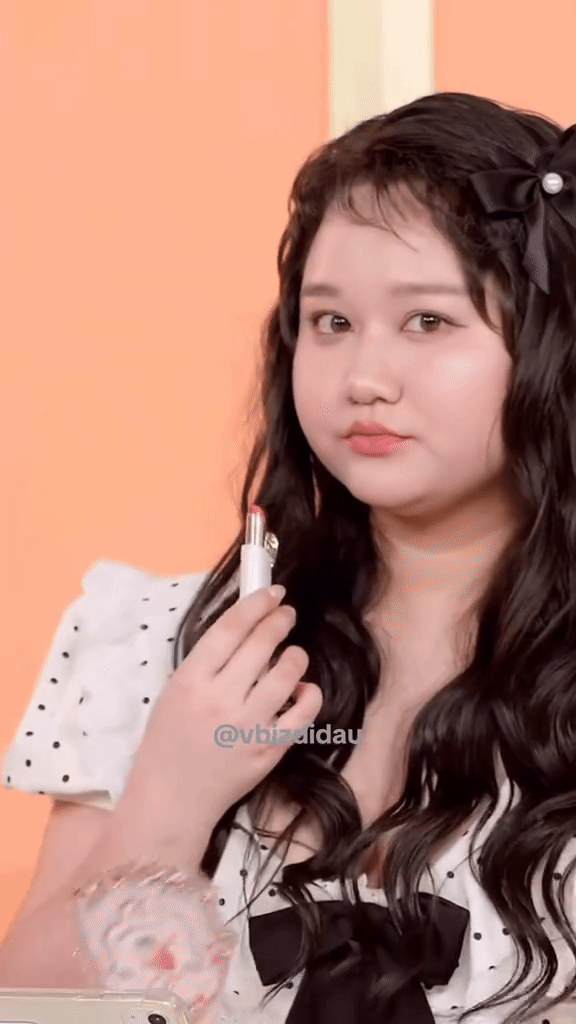 Xuất hiện trong buổi livestream, Trúc Anh diện đầm chấm bi màu trắng style "bánh bèo" kết hợp cùng mái tóc xoăn buông xõa để che bớt khuyết điểm. Dù thân hình tăng cân, chubby nhưng nữ diễn viên vẫn rất tự tin trước ống kính.