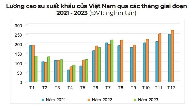 Lũy kế 7 tháng đầu năm 2023, Việt Nam xuất khẩu sang Trung Quốc 757,6 nghìn tấn cao su, trị giá trên 1 tỷ USD, tăng 12% về lượng, nhưng giảm 10,1% về trị giá so với cùng kỳ năm 2022. Nhu cầu tiêu thụ cao su của Trung Quốc đang dần hồi phục được kỳ vọng sẽ là yếu tố hỗ trợ cho xuất khẩu cao su của Việt Nam trong các tháng tới.